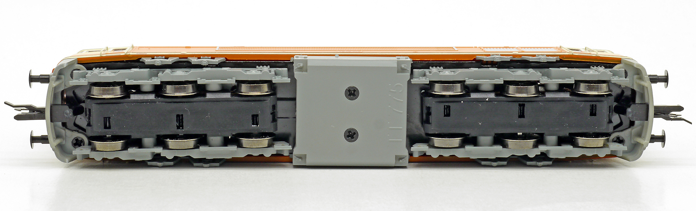 měřítko 1:120 - rozchod kolejí 12 mm osvětlení - 3 reflektory vpředu, 2 světla vzadu, přepínatelné podle směru jízdy 6 hnaných náprav 0 bandážovaných náprav kinematika krátkého spřáhla (KKK) podle normy NEM 358 digitální rozhraní podle NEM 658 s konektorem PluX16 pojezd s kuličkovými ložisky 152 mm - celková délka modelu přes nárazníky 6 - celkový počet náprav nebo rozložení náprav 225 g - hmotnost netto - pouze model