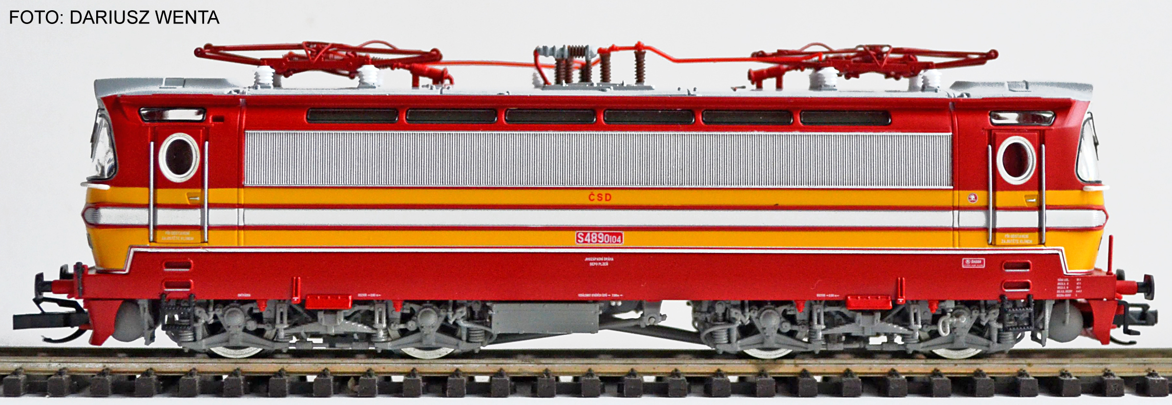 Popis   elektrická lokomotiva v barevné kombinaci červená-žlutá, šedá střecha
