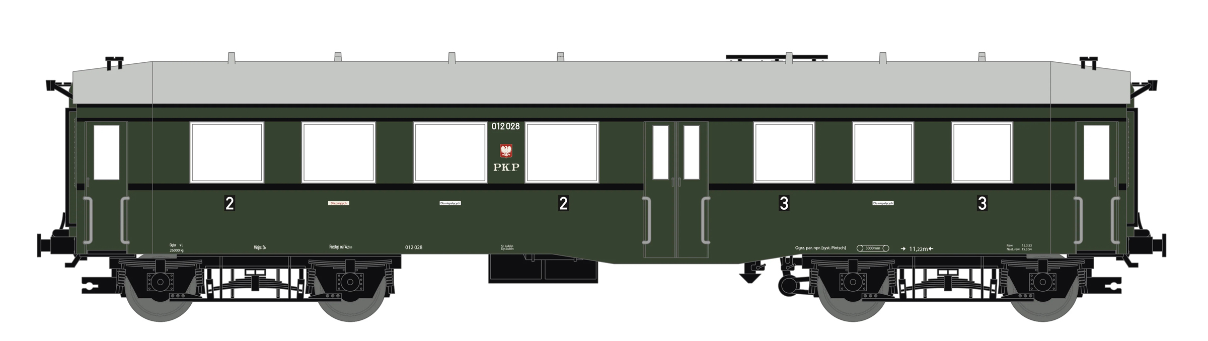 Popis   osobní vůz zelený s šedou střechou 2./3. tř.