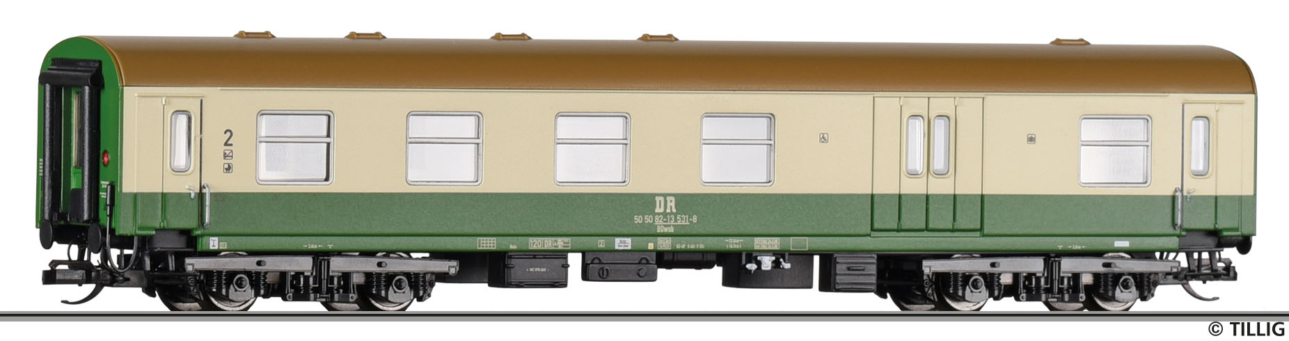 | osobní vůz zelený-slonová kost 2. tř. se zavazadlovým oddílem a oddílem pro invalidy |