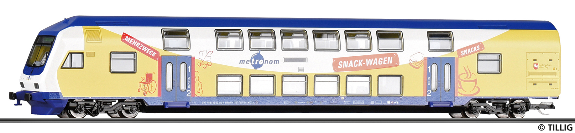 | řídící patrový vůz 1./2. tř. v barevném schematu „metronom Eisenbahngesellschaft“ |