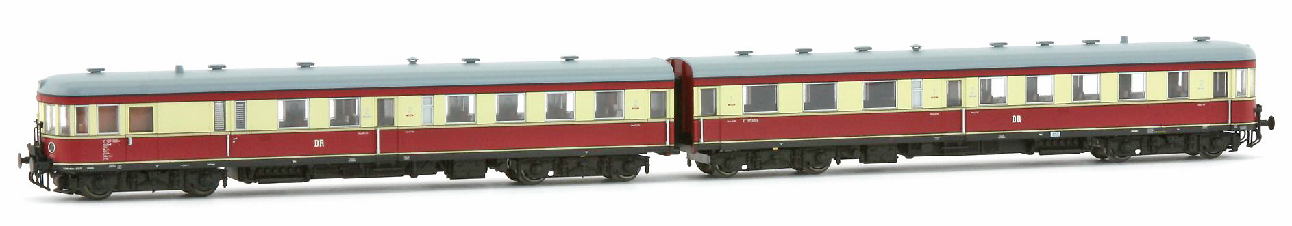 | dvoudílná motorová jednotka červená-slonová kost, šedá střecha |
