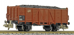 otevřený nákladní vůz červenohnědý ložený uhlím