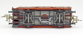 | otevřený nákladní vůz červenohnědý s brzdařskou budkou |