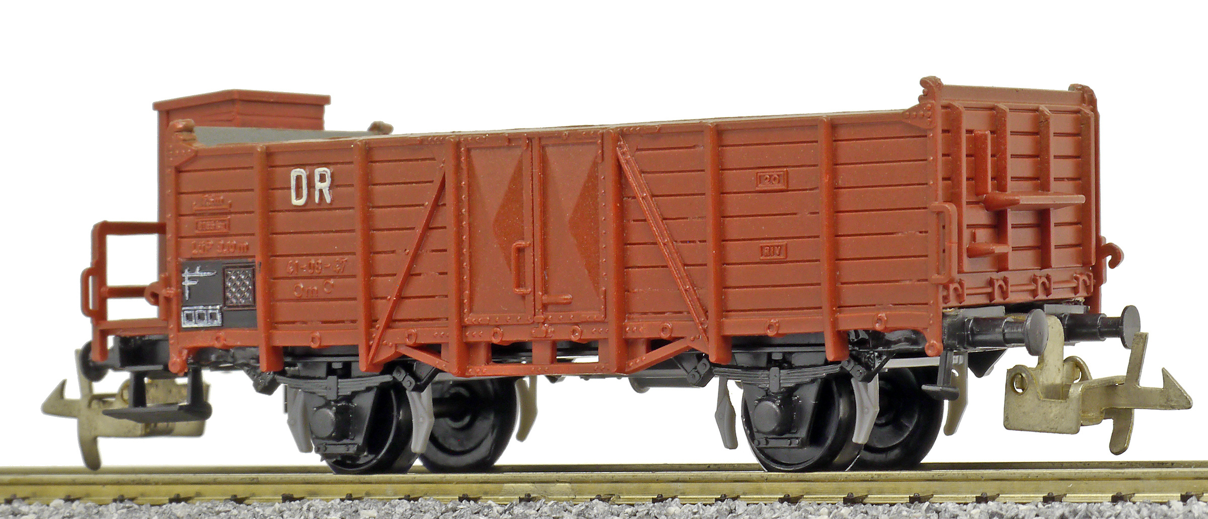 | otevřený nákladní vůz červenohnědý s brzdařskou budkou |