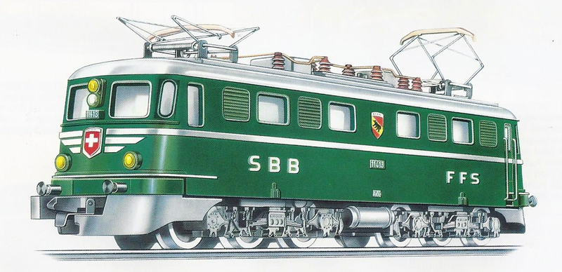 | elektrická lokomotiva zelená s šedou střechou, šedý pojezd |
