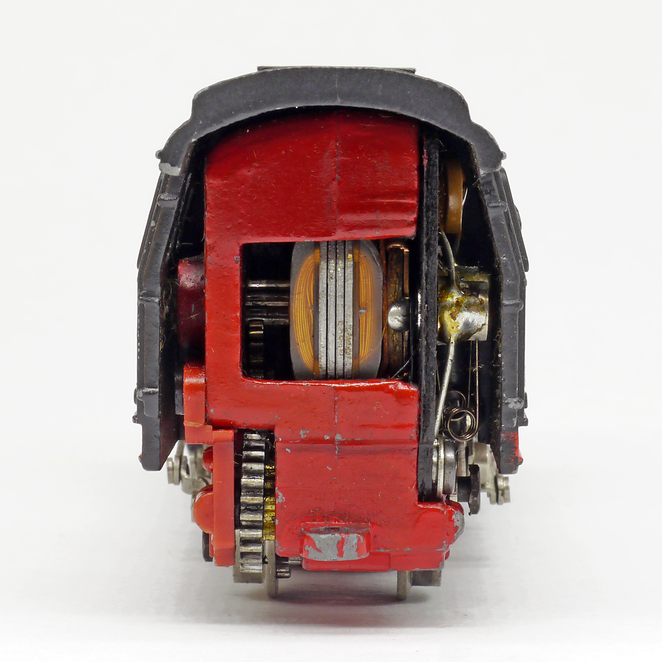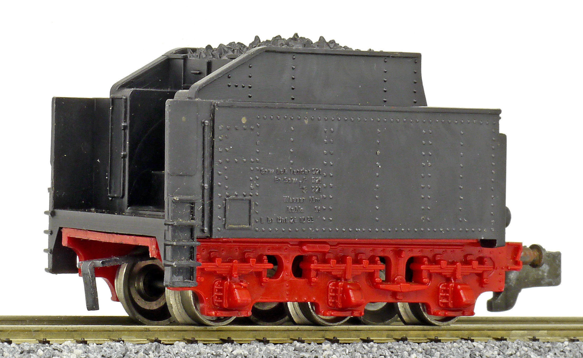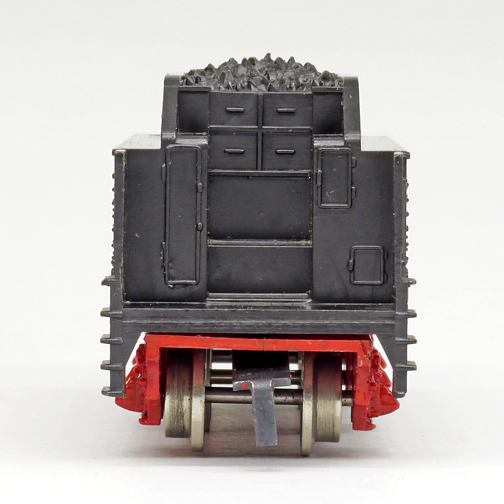 Popis   parní lokomotiva černá s červeným pojezdem a s kouřovými plechy