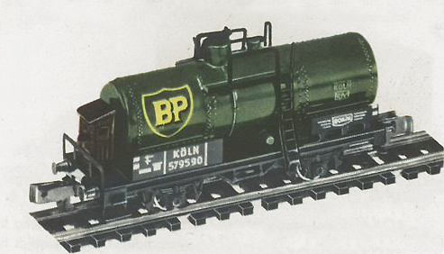 | kotlový vůz zelený s logem „BP“ a s brzdařskou budkou |