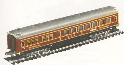 | jídelní vůz červený s šedou střechou „DSG“ |