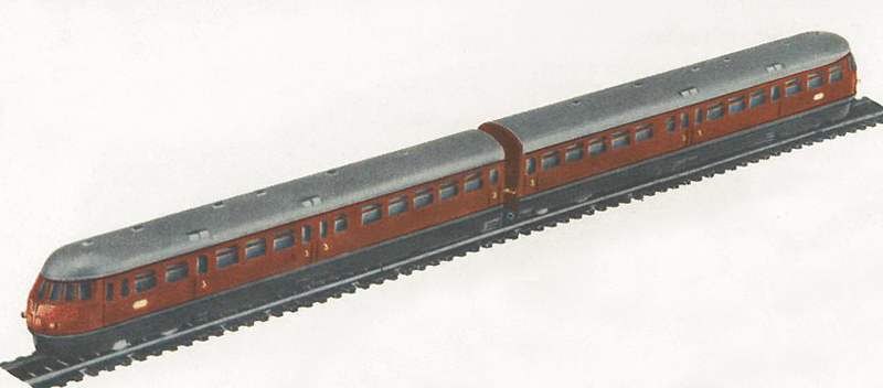 dvouvozová motorová jednotka červená-tmavě šedá se stříbrnou střechou