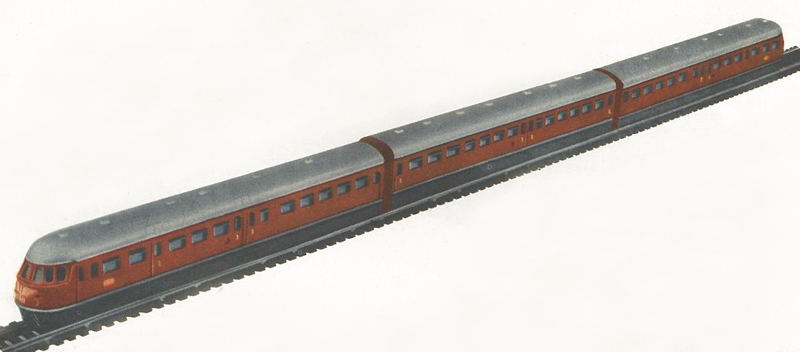 | třívozová motorová jednotka červená-tmavě šedá se stříbrnou střechou |