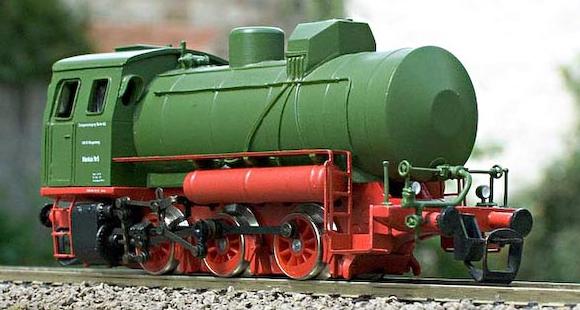 | akumulační parní lokomotiva zelená s červeným pojezdem „Meiningen Typ C“ |