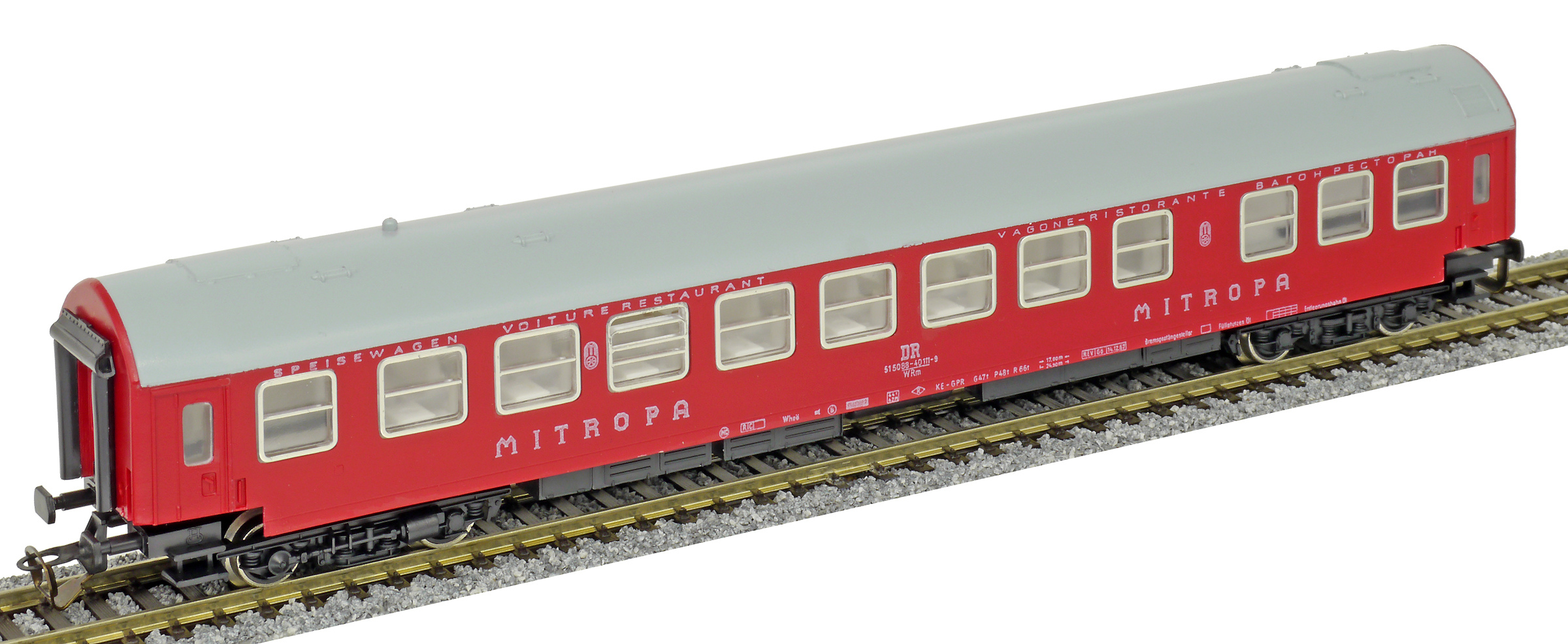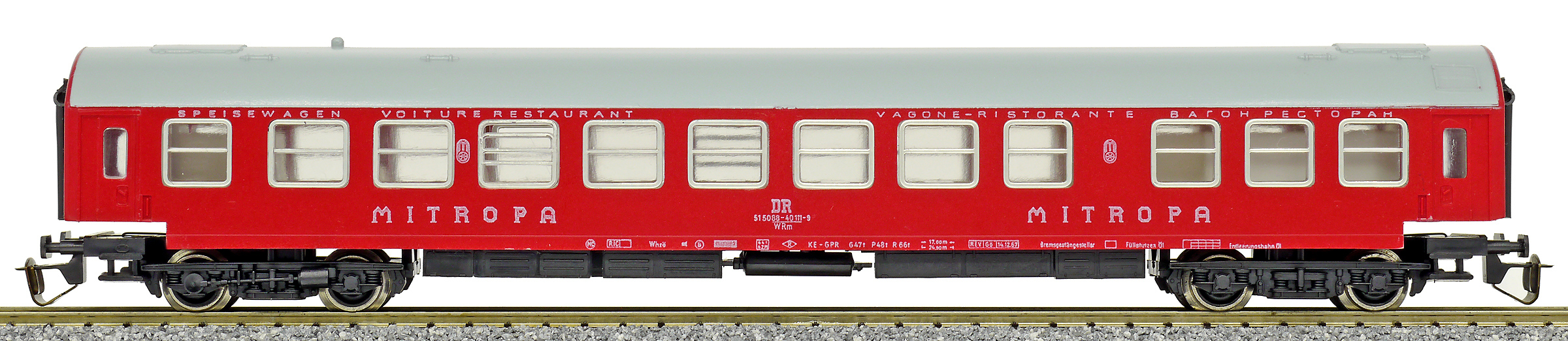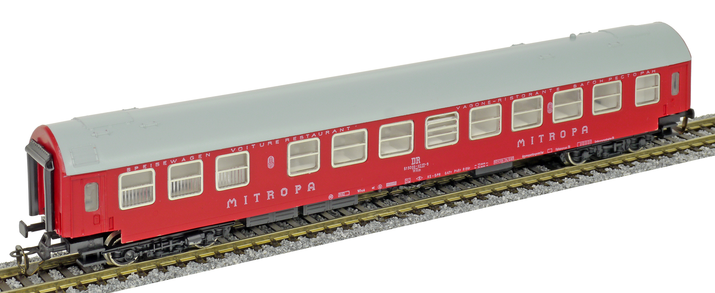 Popis   jídelní vůz červený s šedou střechou „MITROPA“