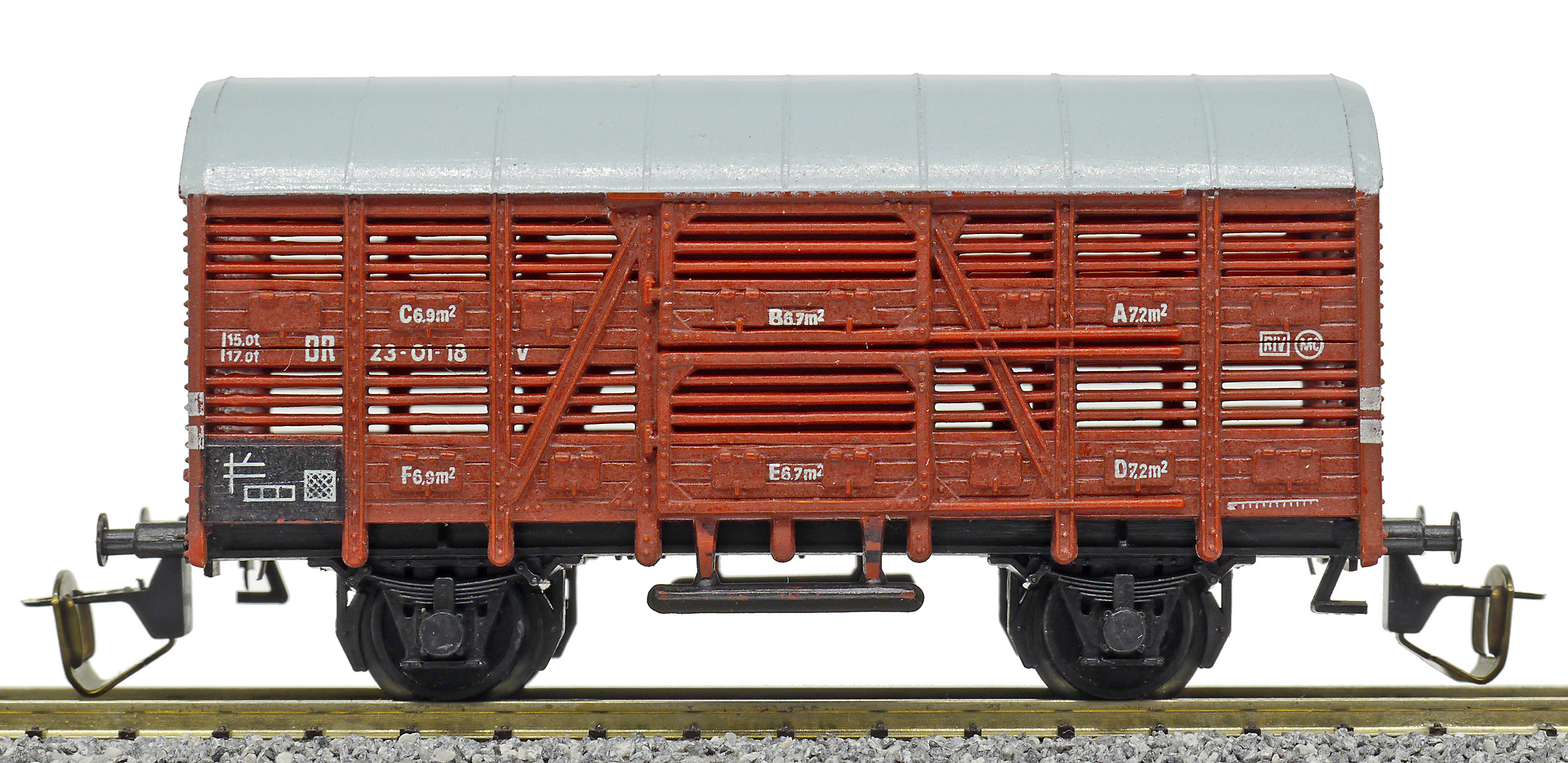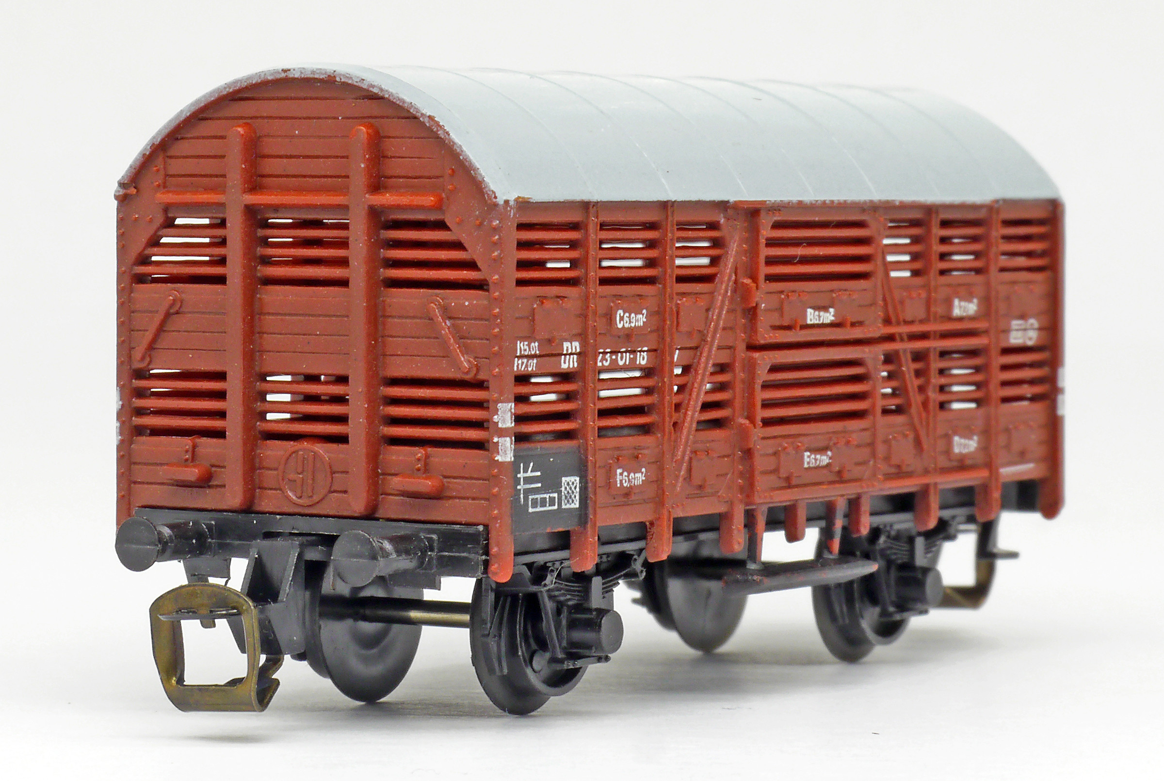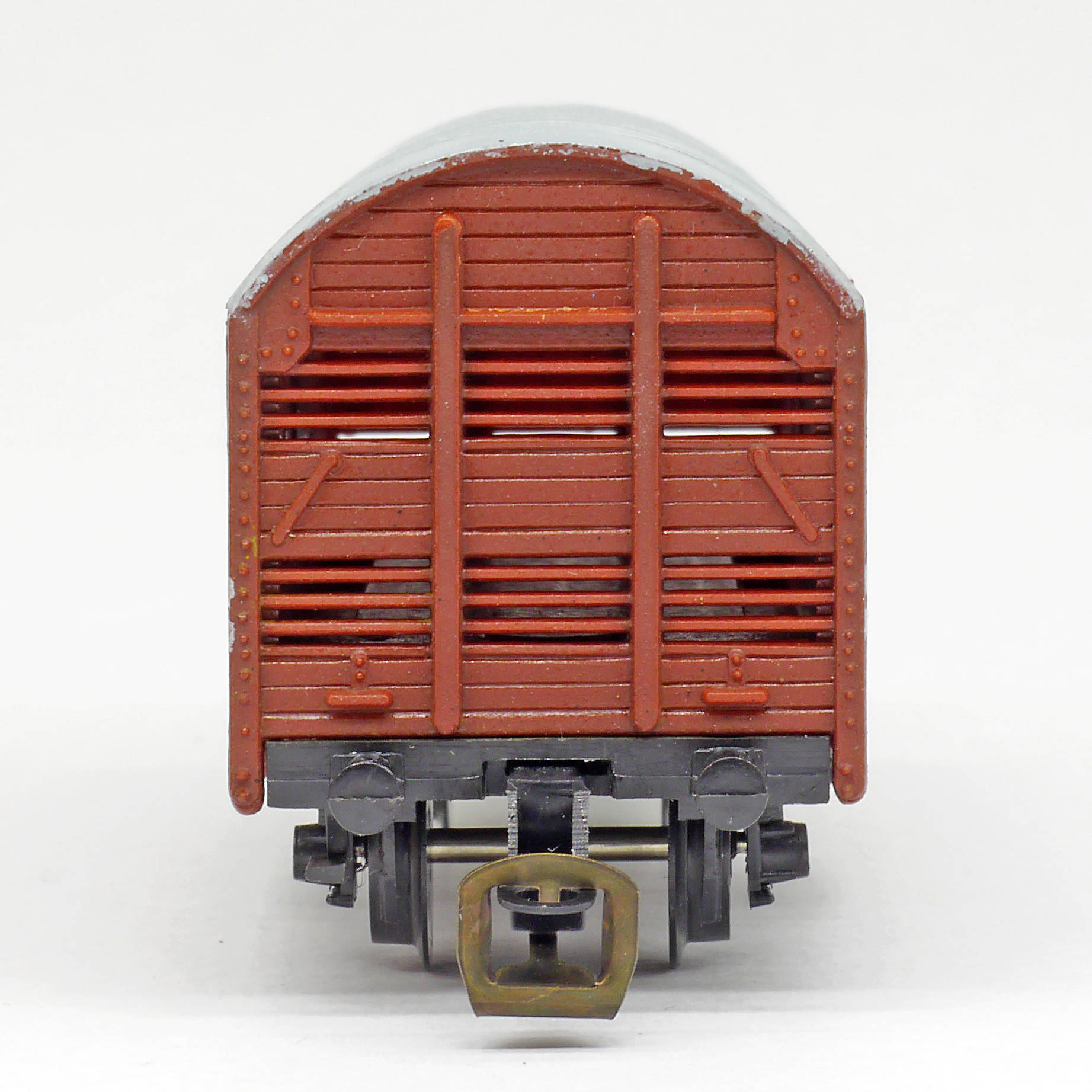 nákladní vůz na přepravu zvířat červenohnědý s šedou střechou