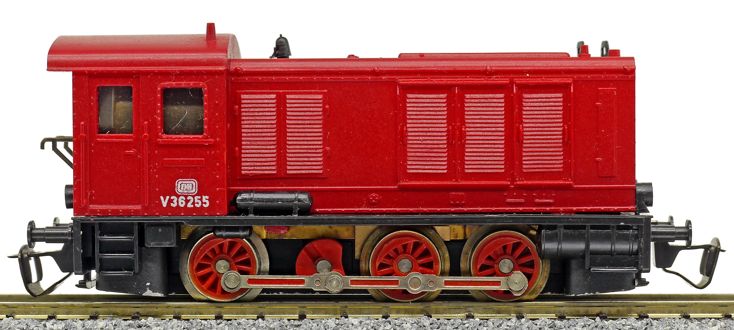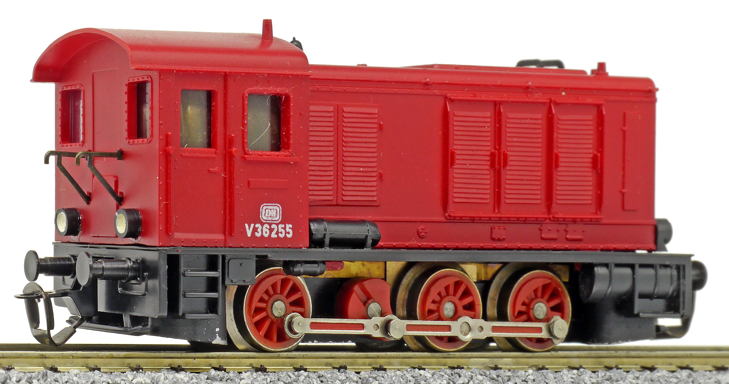 Popis   dieselová lokomotiva červená s černým rámem, červená kola
