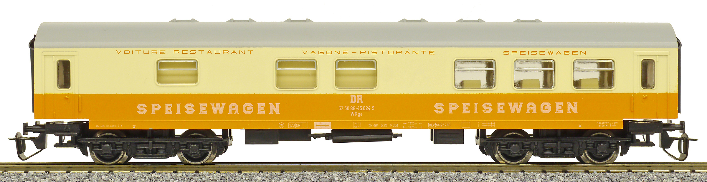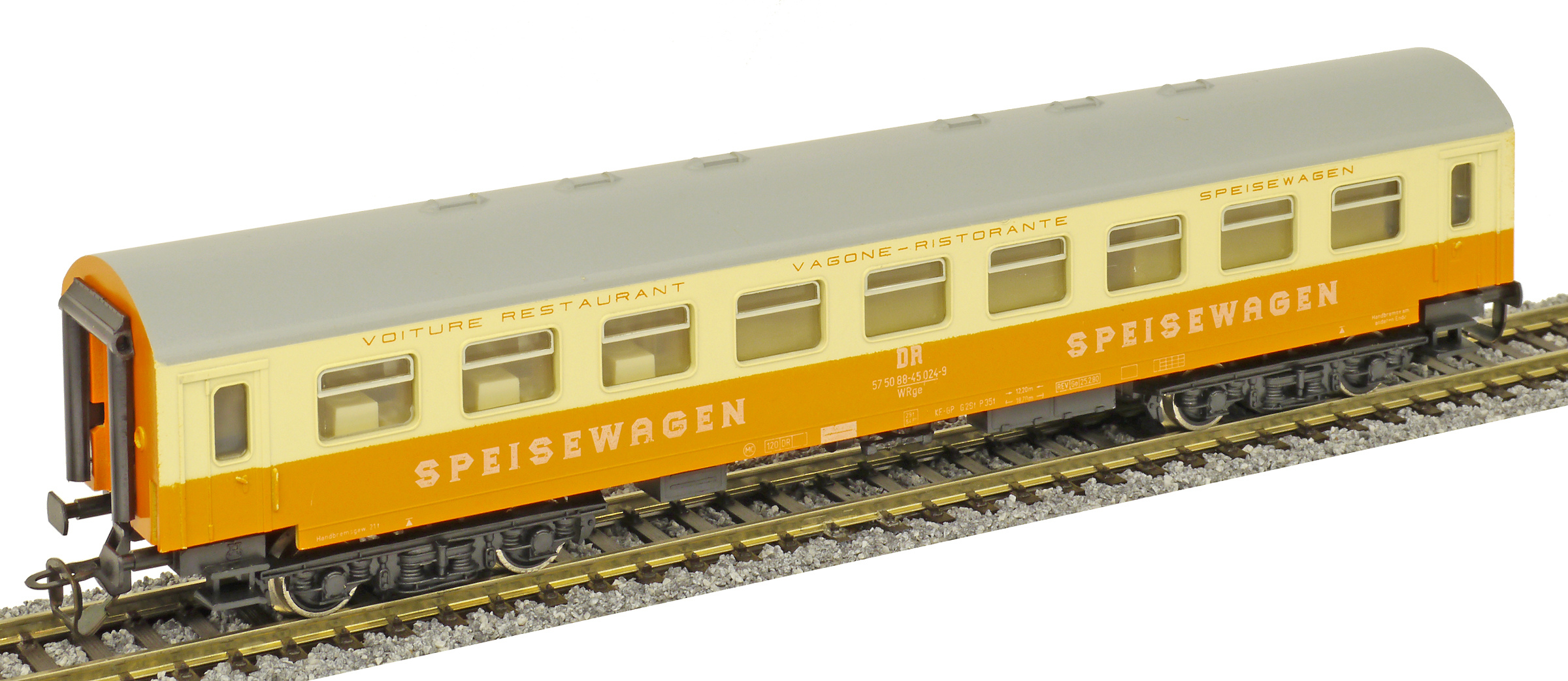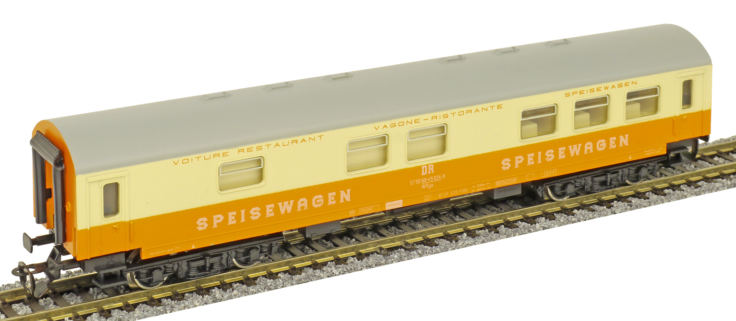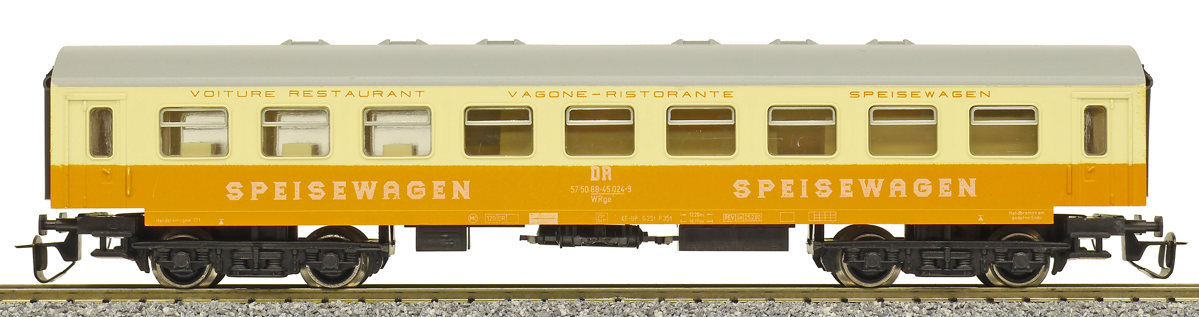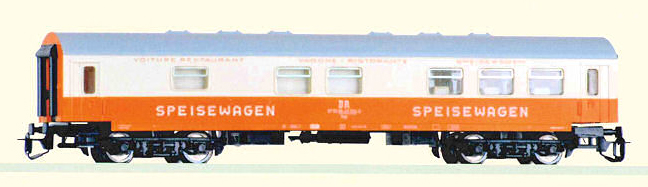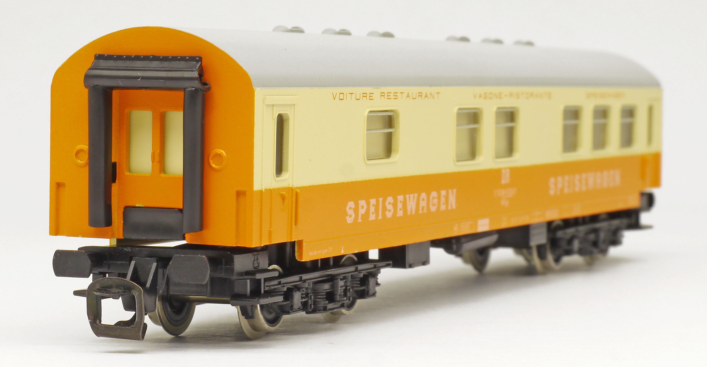 | jídelní vůz oranžový-slonová kost s šedou střechou „MITROPA“ |