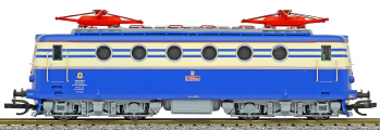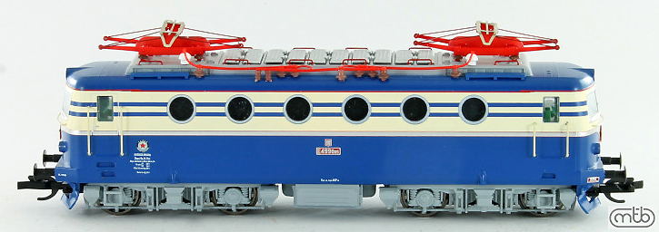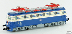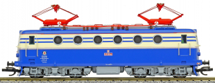Popis   elektrická lokomotiva v nátěru modrá-slonová kost