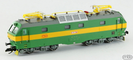 | elektrická lokomotiva zelená se žlutým výstražným pruhem |