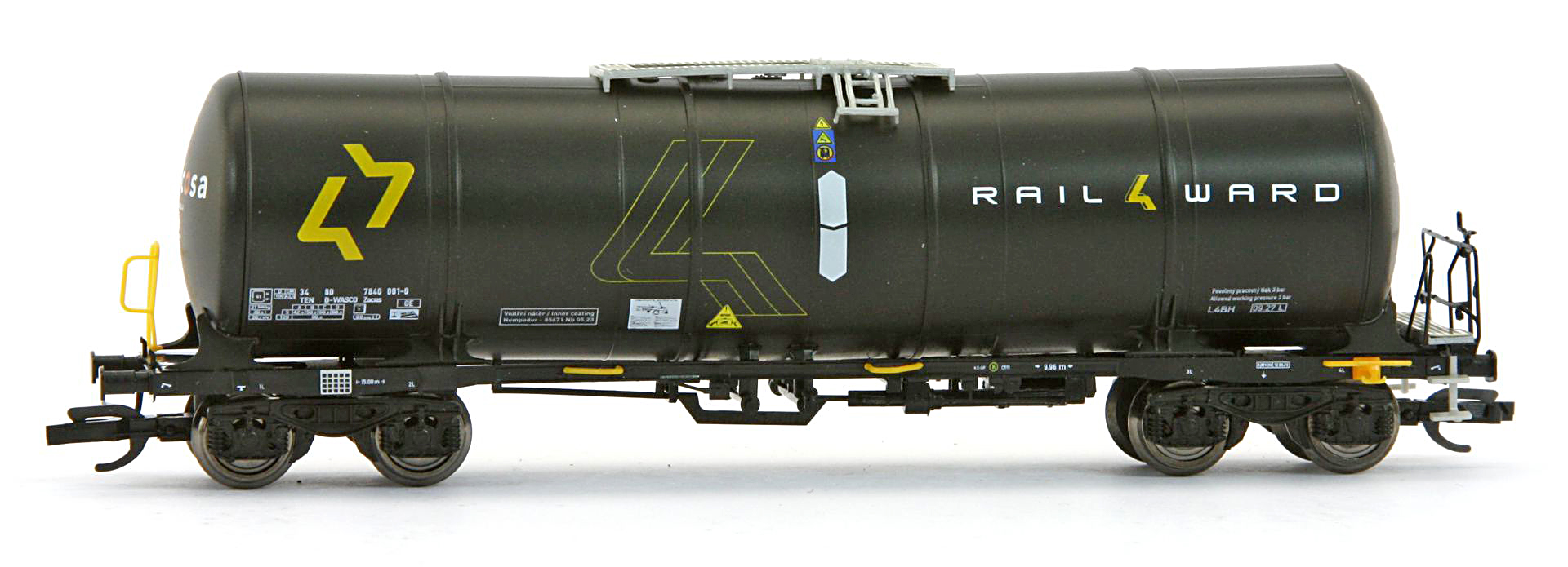 | kotlový vůz černý s logem „RAIL4WARD“ |