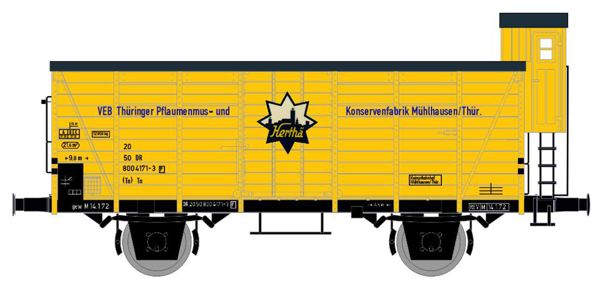 | krytý nákladní vůz oranžový s černou střechou „VEB Konsum Nährmittelwerk Erfurt Rotplombe“ |