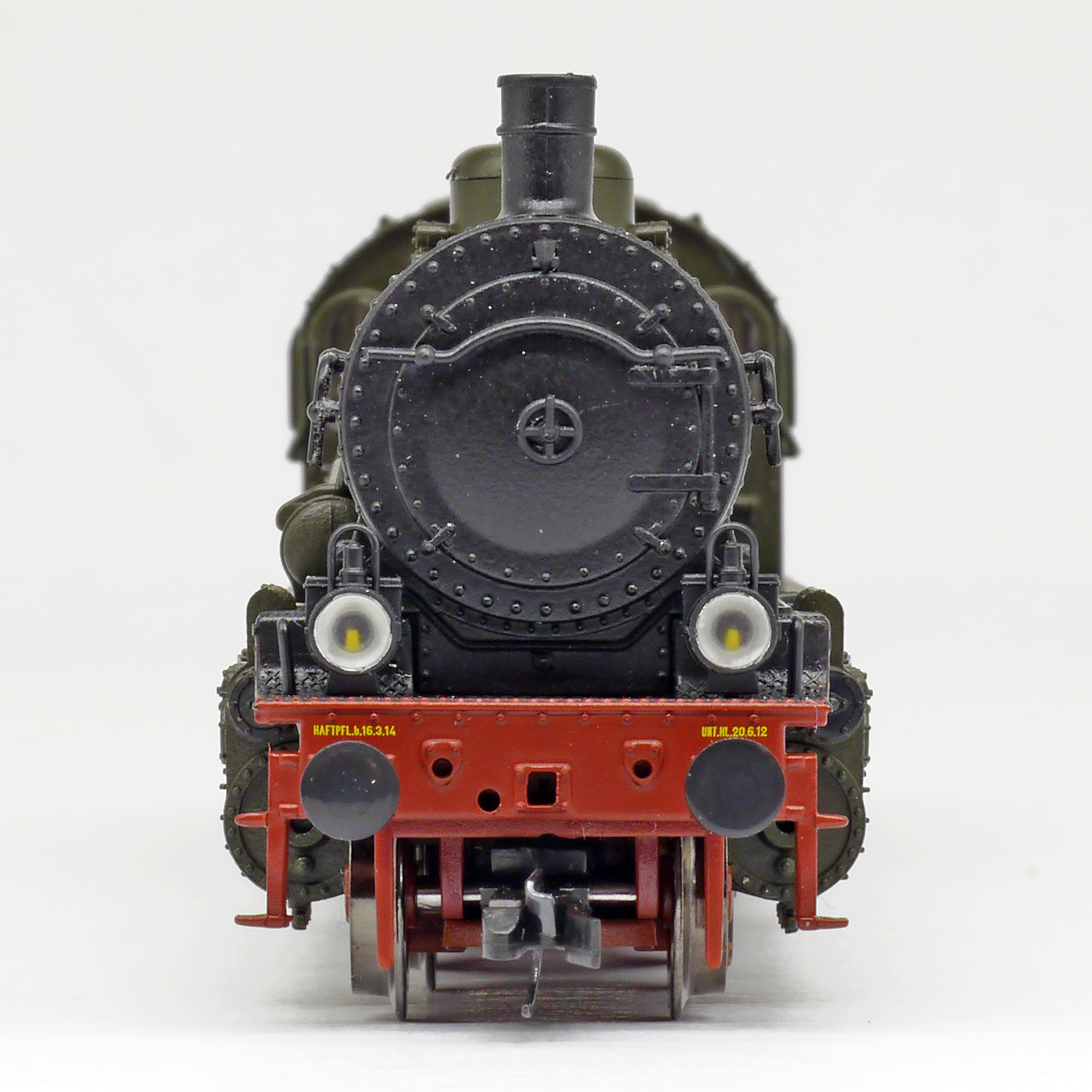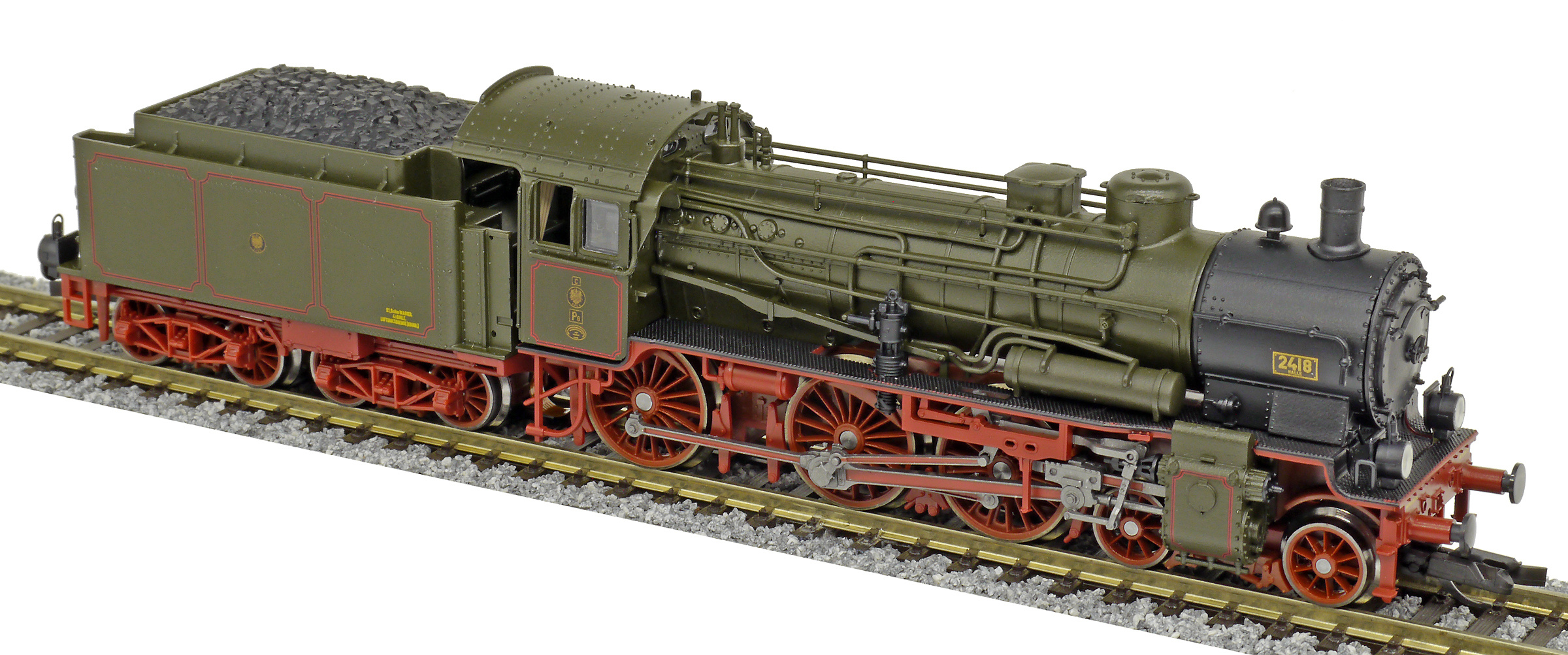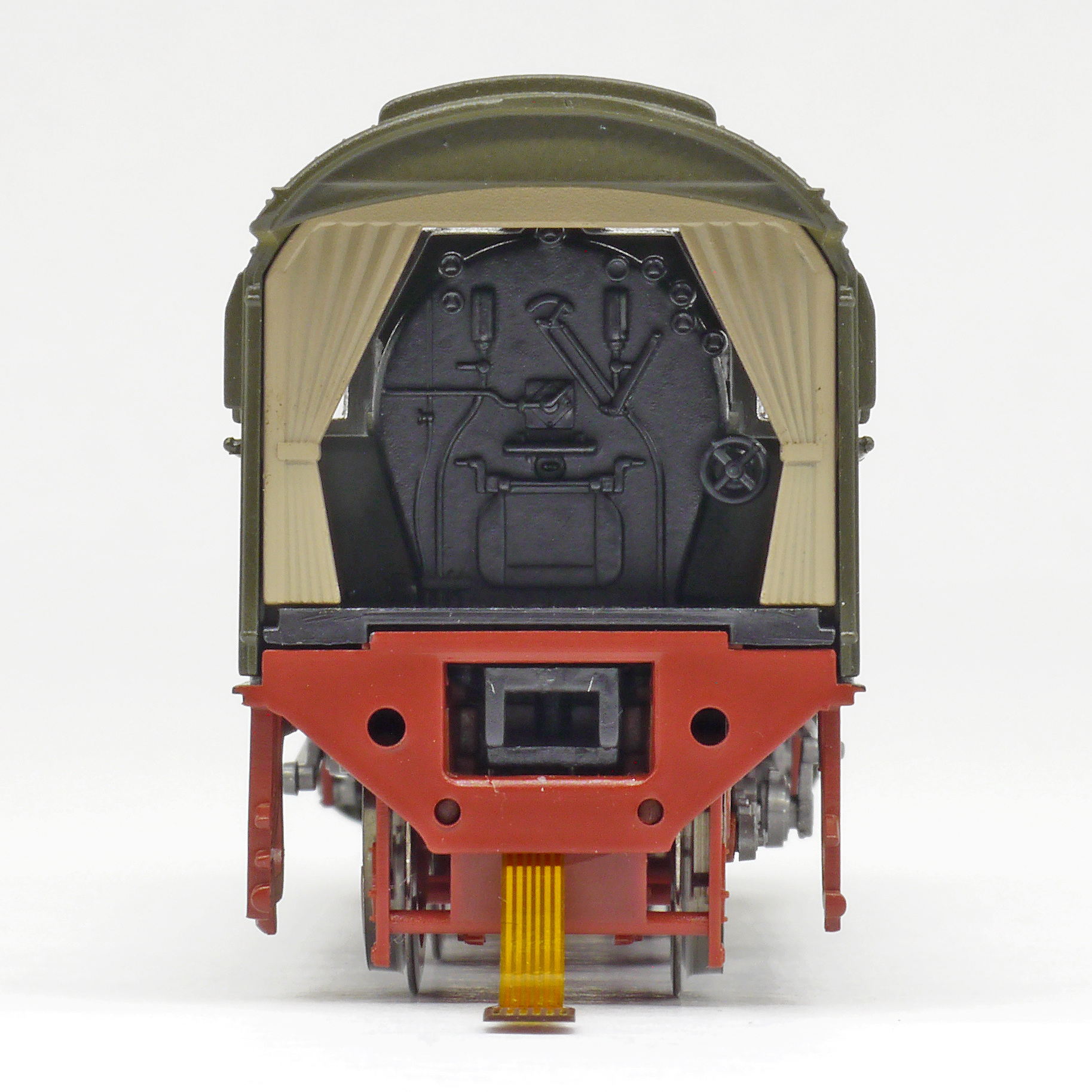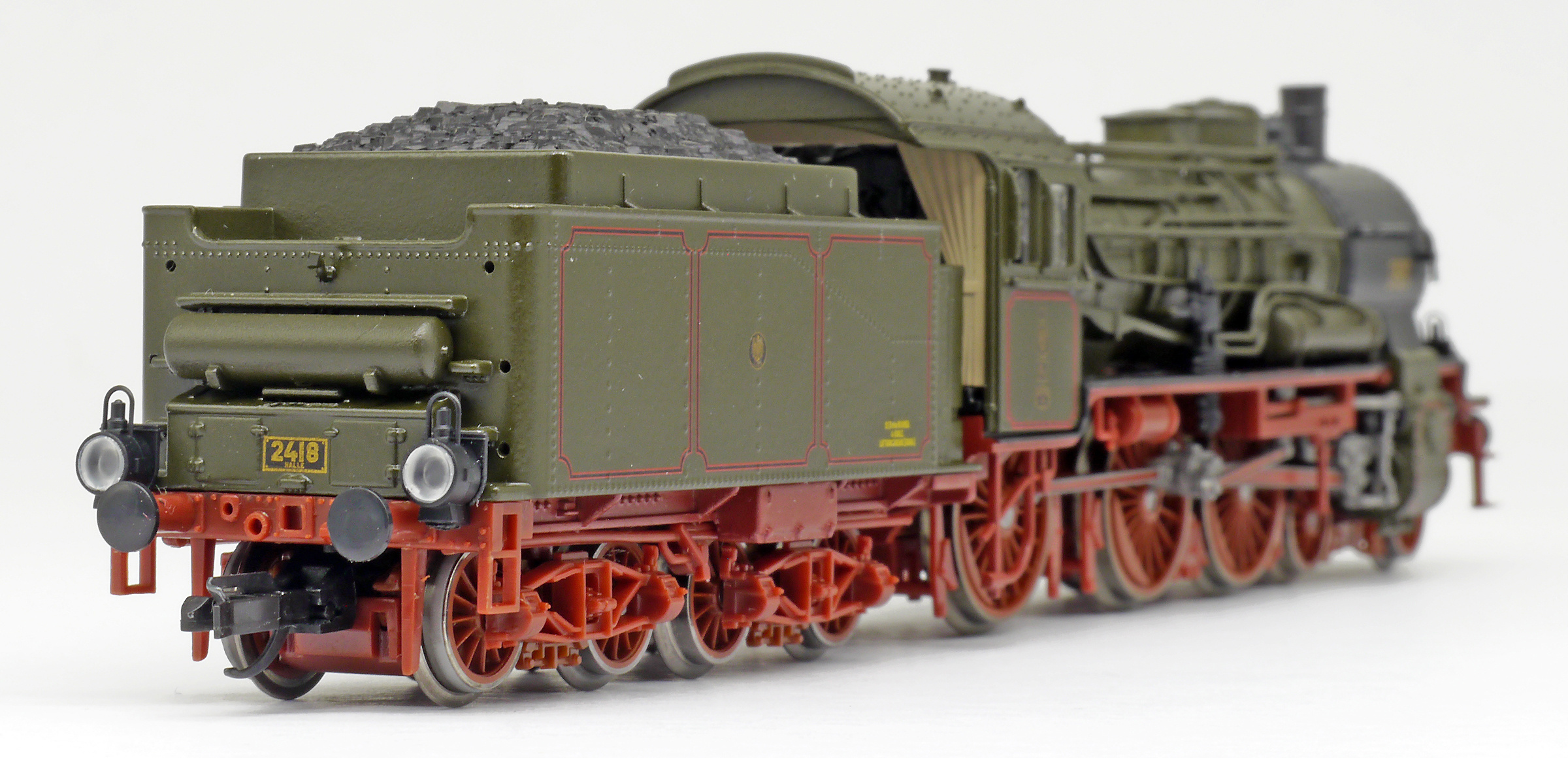Popis   parní lokomotiva tmavě zelená s červeným pojezdem