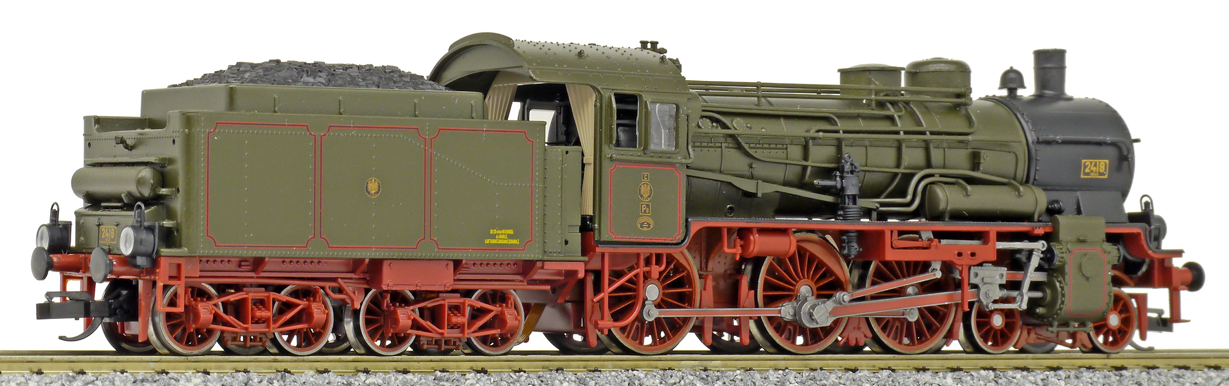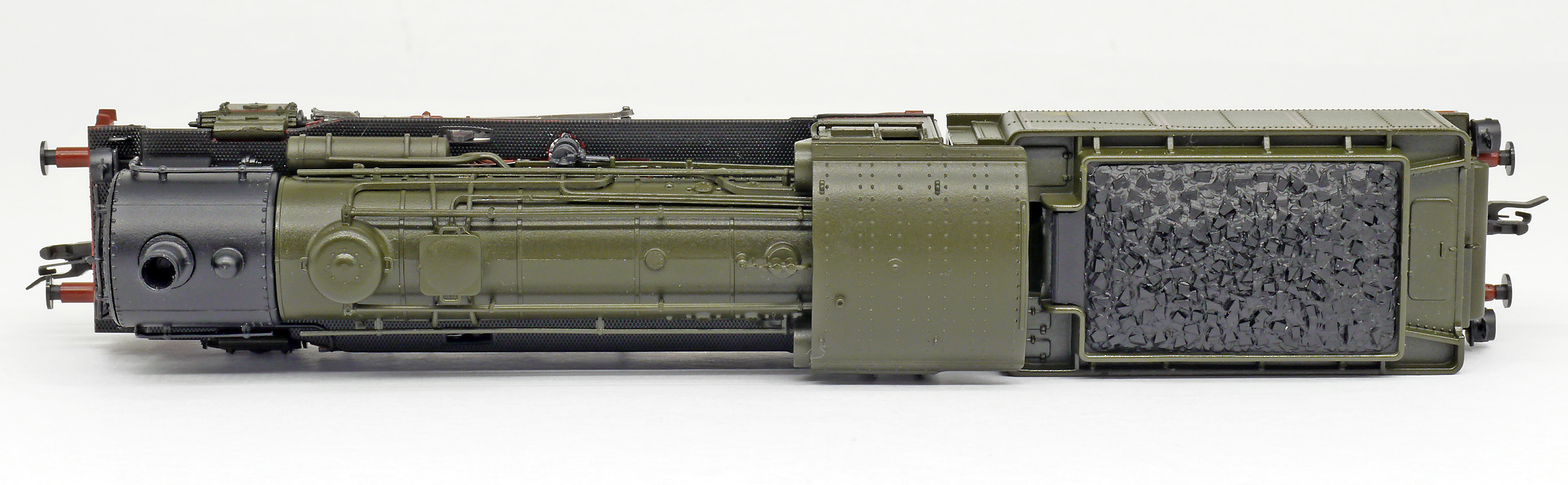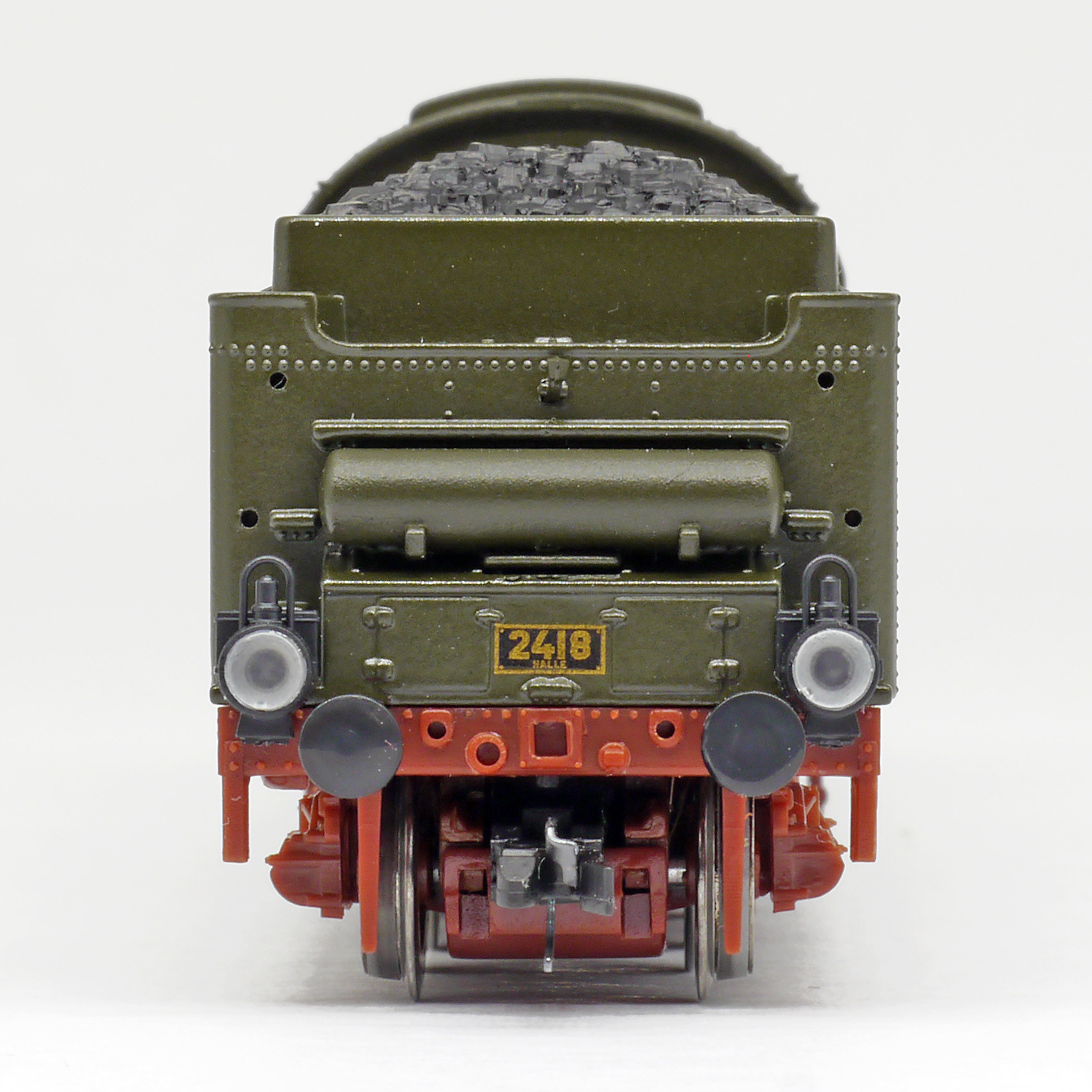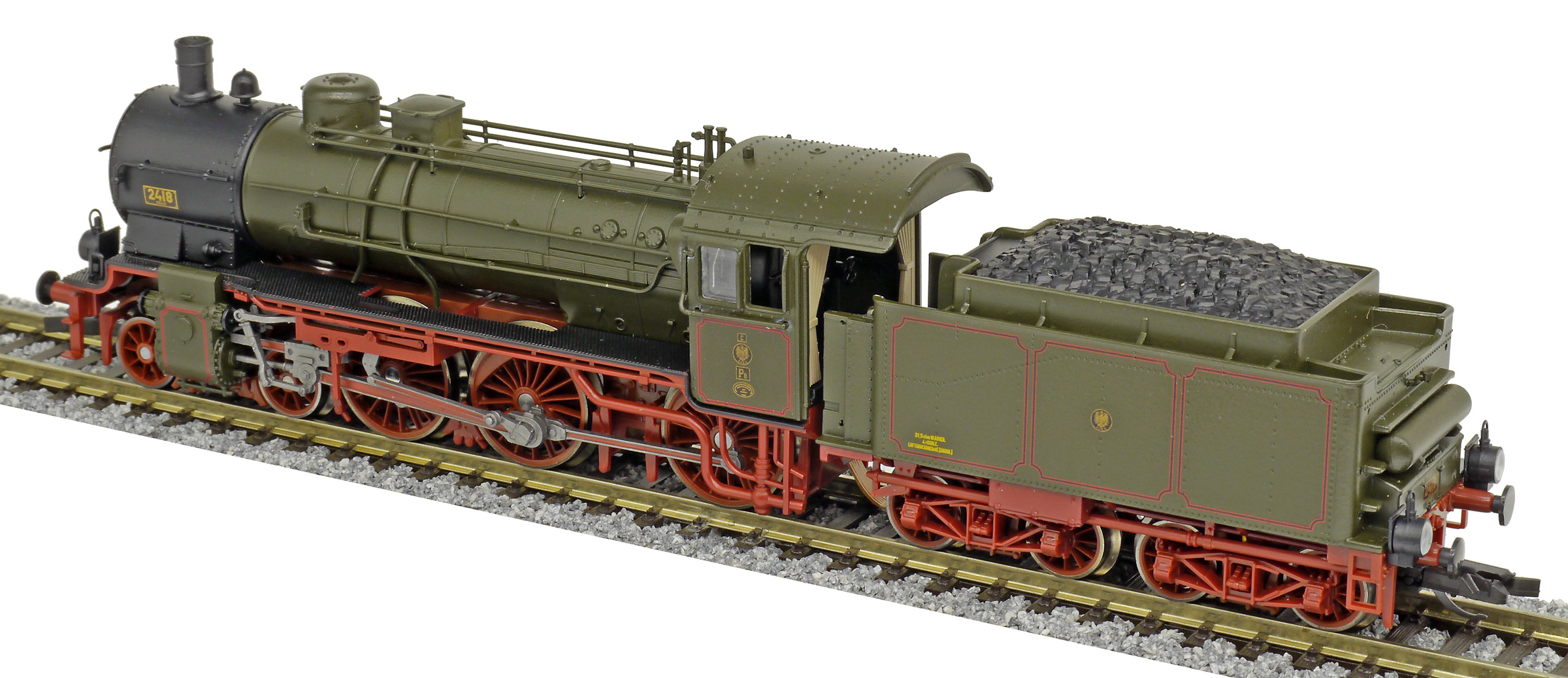 Popis   parní lokomotiva tmavě zelená s červeným pojezdem