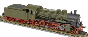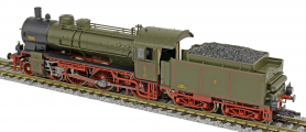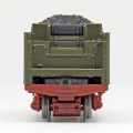 | parní lokomotiva tmavě zelená s červeným pojezdem |