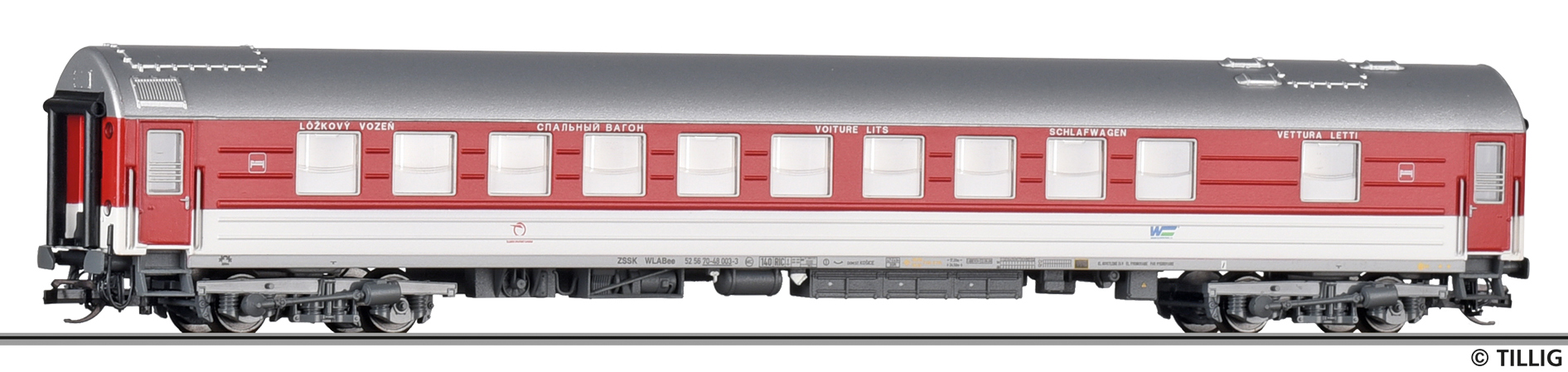 | lůžkový vůz červený-bílý s stříbřitou střechou |