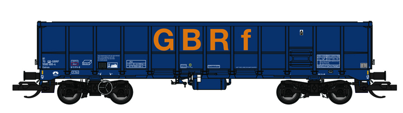 | vysokostěnný nákladní vůz modrý s logem „GBRf“ |