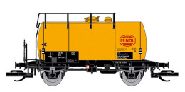| set dvou žlutých kotlových vozů s logem „MINOL“ |