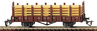| níkostěnný nákladní vůz červenohnědý s klanicemi s nákladem prken |