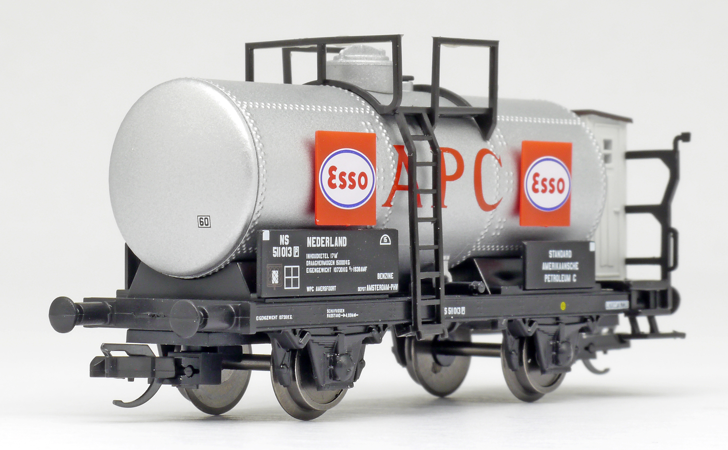 | kotlový vůz stříbrný s brzdařskou budkou „APC/ESSO“ |