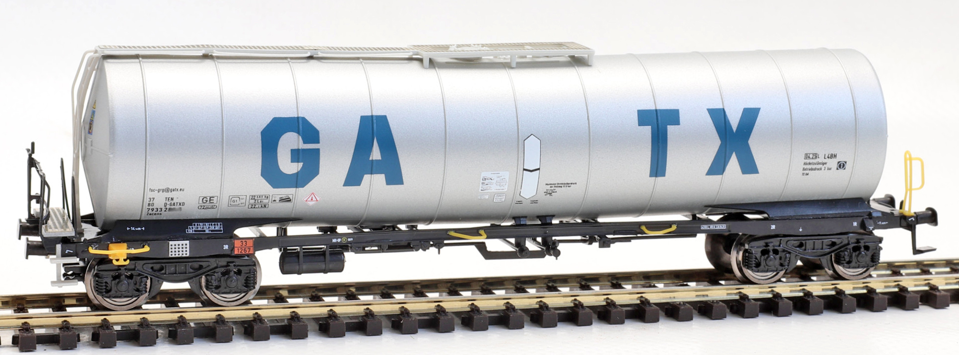 | kotlový vůz stříbrný s logem „GATX“ |