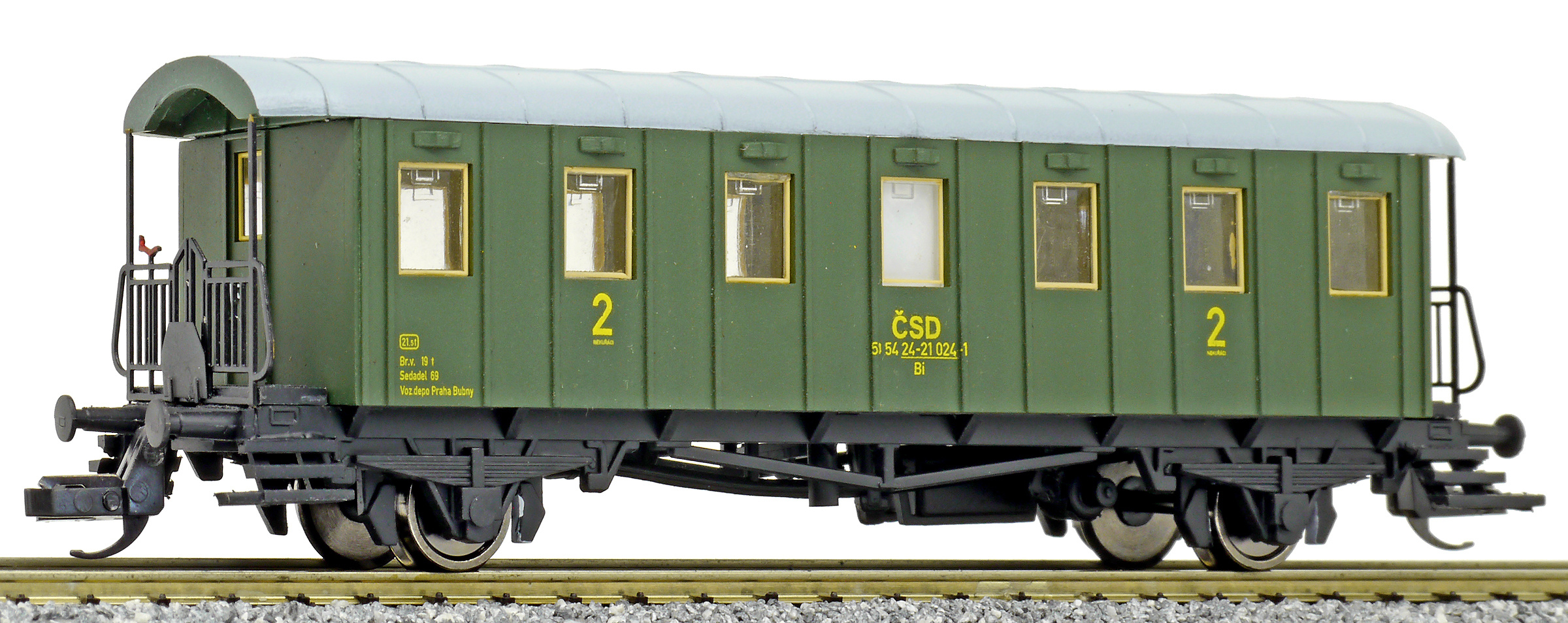 | osobní vůz zelený s šedou střechou 2. tř. |