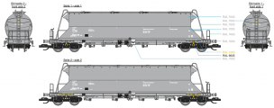 | • 31 50 930 8488-9 | → | nákladní, s podvozky, pevný rozchod, ve vlastnictví železniční správy, RIV, PPV |