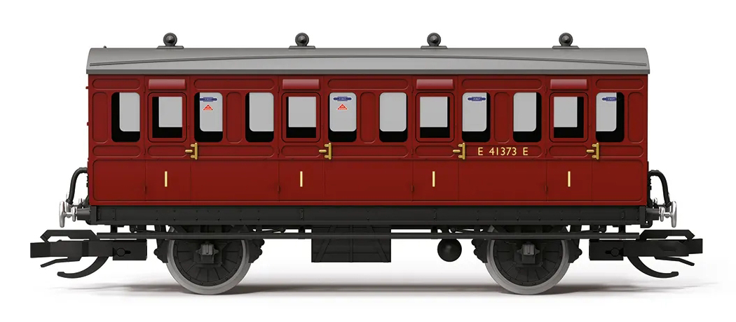 | osobní vůz tmavě červený se světle šedou střechou „First Class Coach“ |