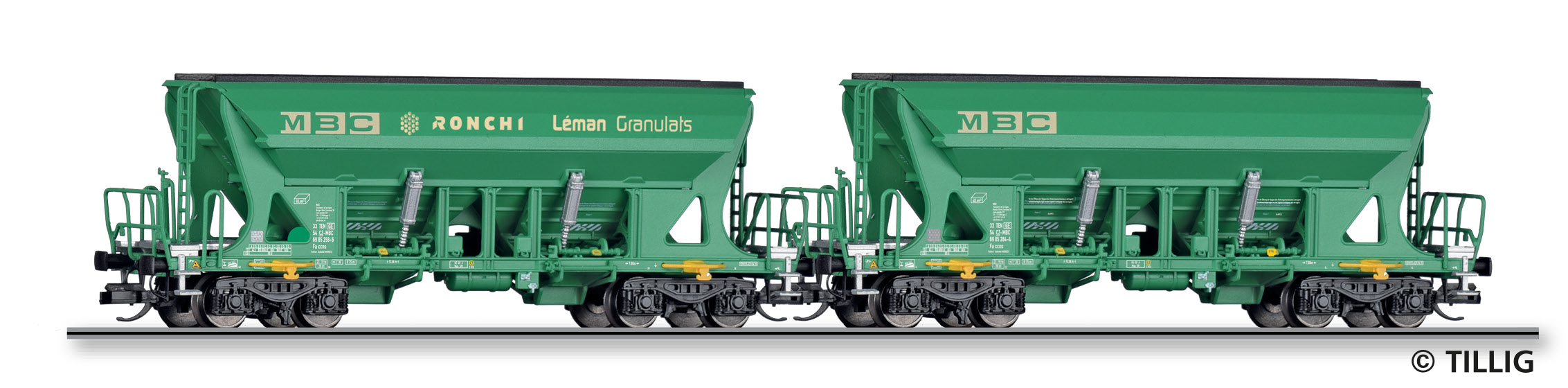 | set dvou nákladních samovýsypných vozů s logem „MBC“ |