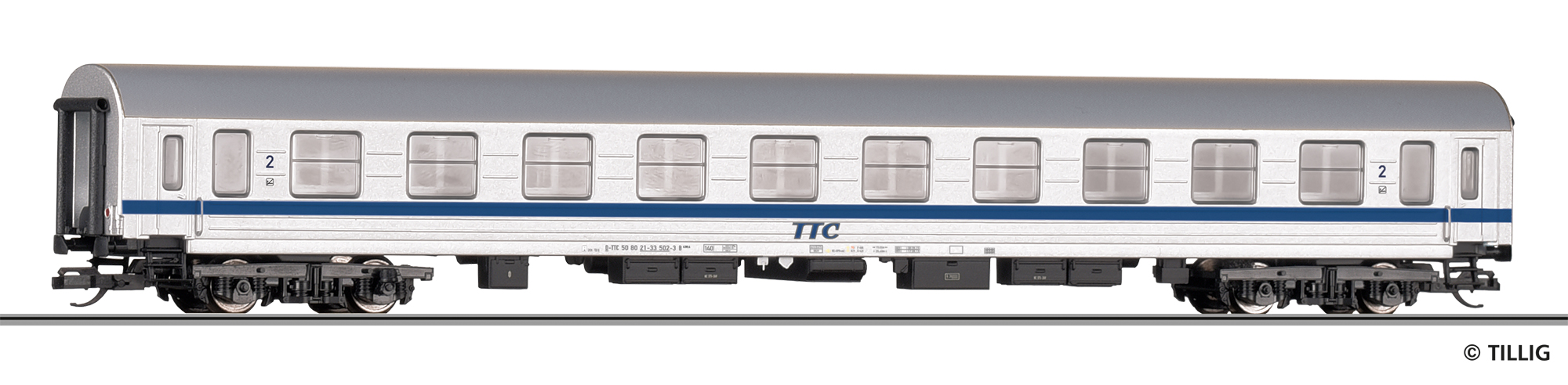 | rychlíkový vůz v barevném schematu „TILLIG-TT-Club“ 2. tř. |