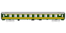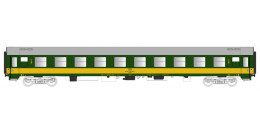 | rychlíkový vůz zelený se žlutým pruhem a šedou střechou 2. tř. |