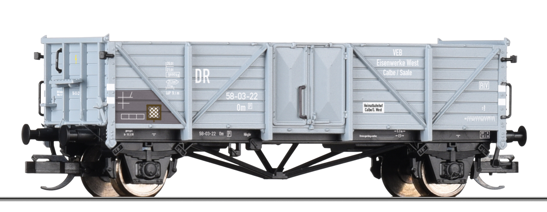 | otevřený nákladní vůz šedý „VEB Eisenwerke West“ |
