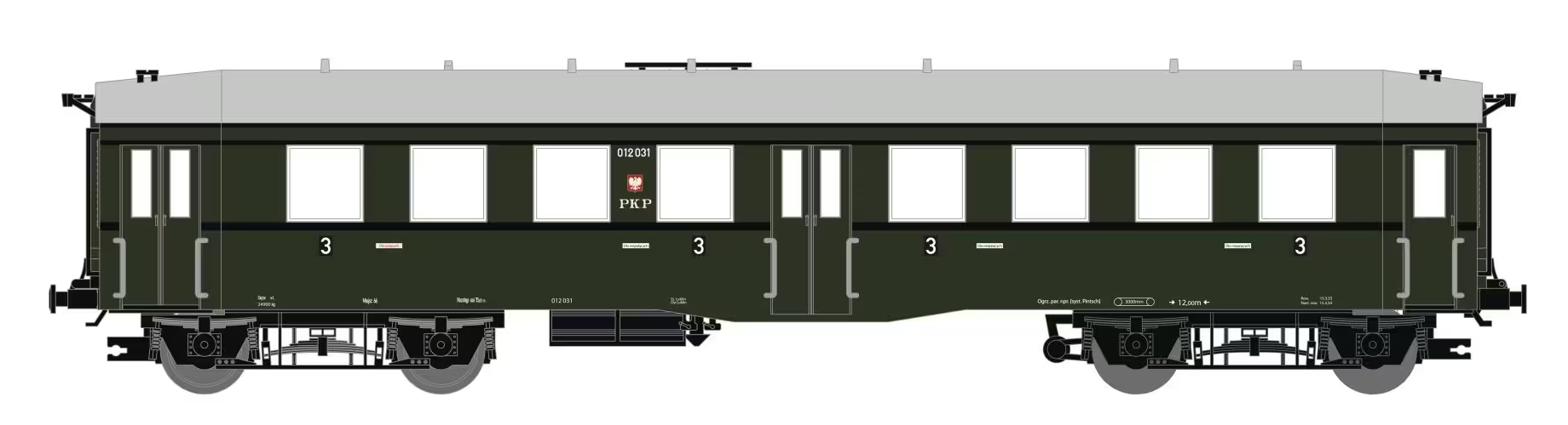 Popis   osobní vůz zelený s šedou střechou 3. tř.