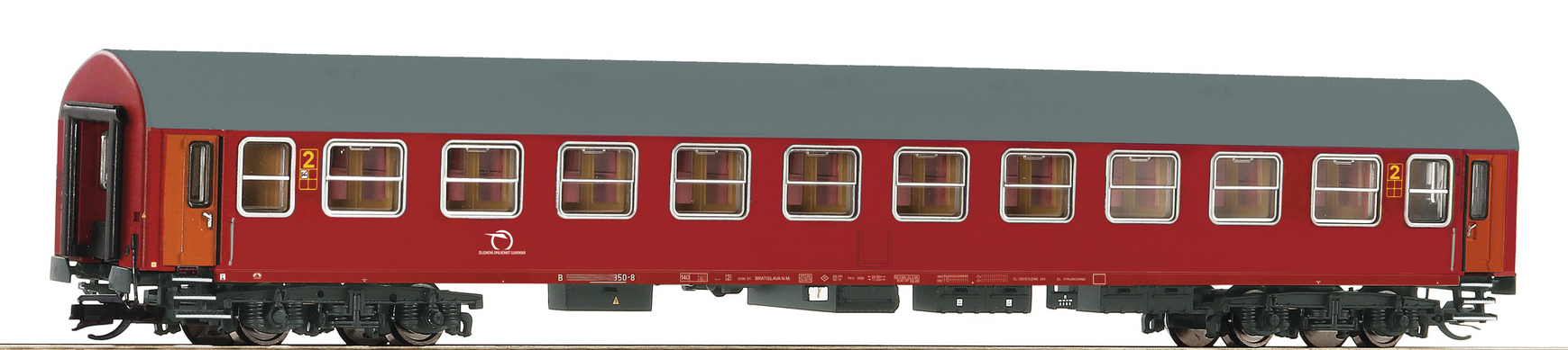 rychlíkový vůz červený s šedou střechou 2. tř.