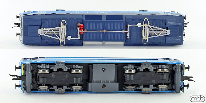 měřítko 1:120 - rozchod kolejí 12 mm osvětlení - 3 reflektory vpředu, 2 světla vzadu, přepínatelné podle směru jízdy 4 hnané nápravy 0 bandážovaných náprav kinematika krátkého spřáhla (KKK) podle normy NEM 358 digitální rozhraní podle NEM 658 s konektorem PluX16 setrvačník 140 mm - celková délka modelu přes nárazníky 4 - celkový počet náprav nebo rozložení náprav