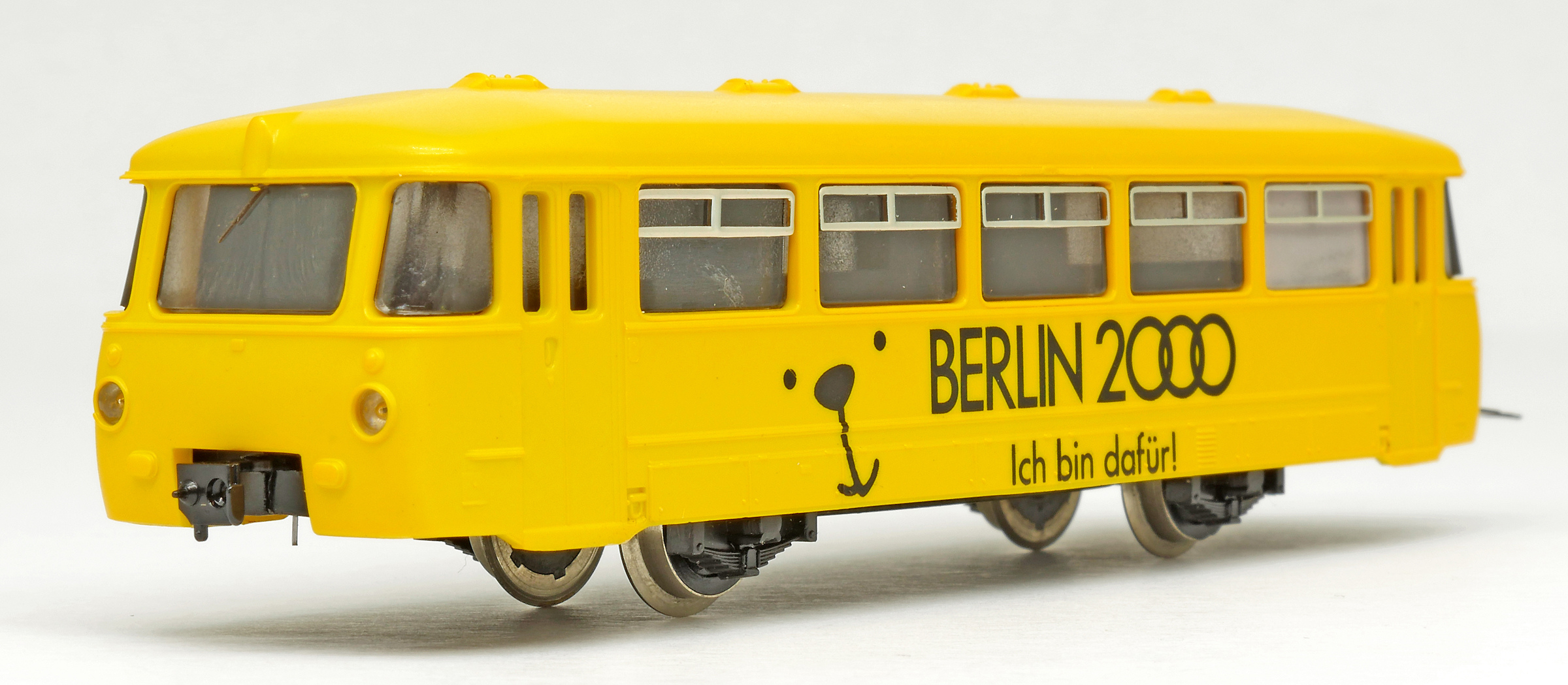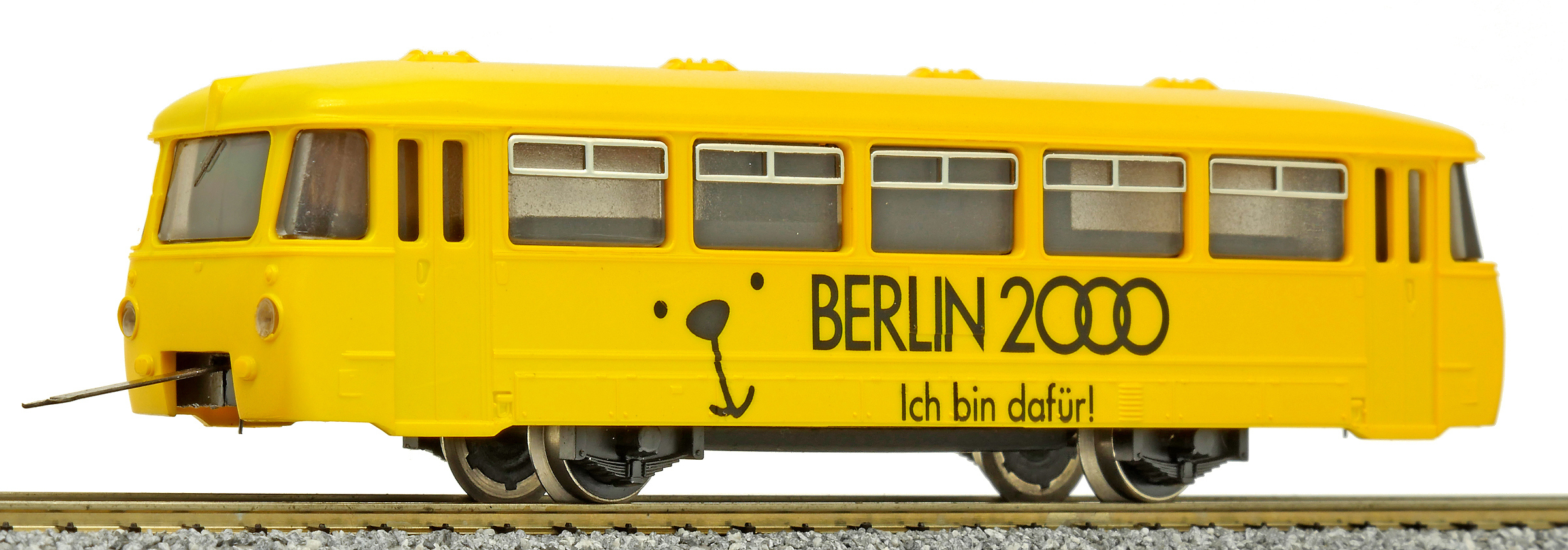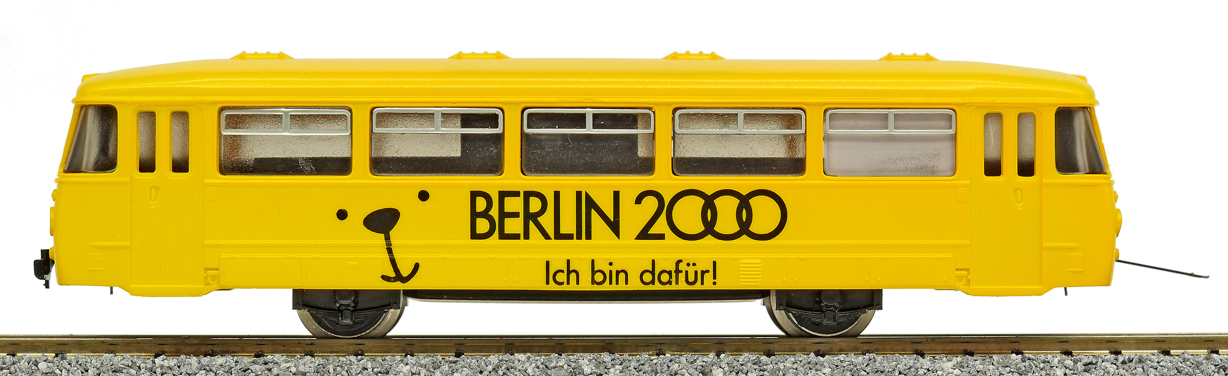 | přívěsný vůz žlutý s olympijským motivem „Berlin 2000 - Ich bin dafür!“ |