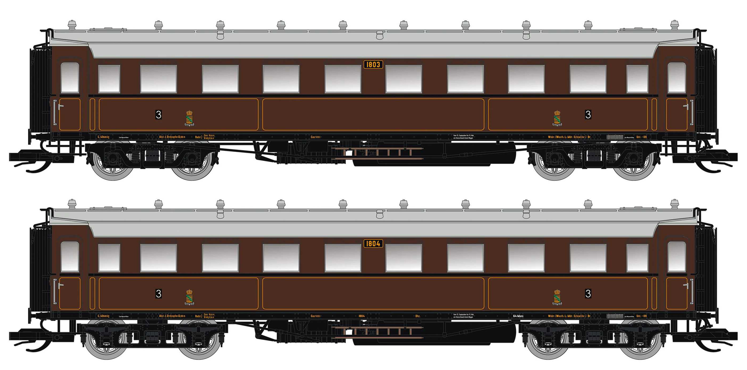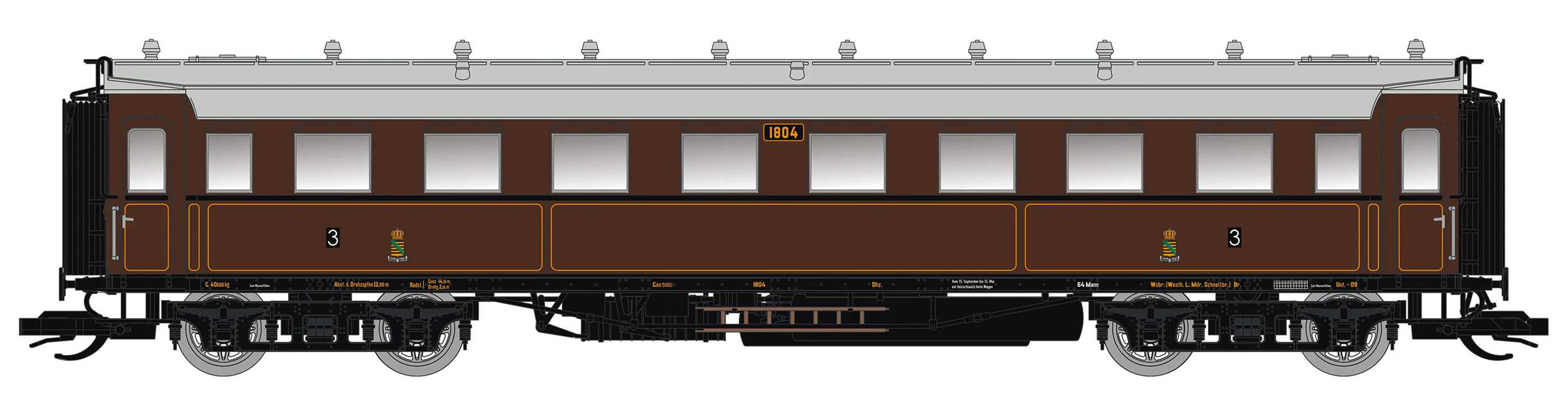 | oddílový osobní vůz hnědý s šedou střechou 3. tř. |
