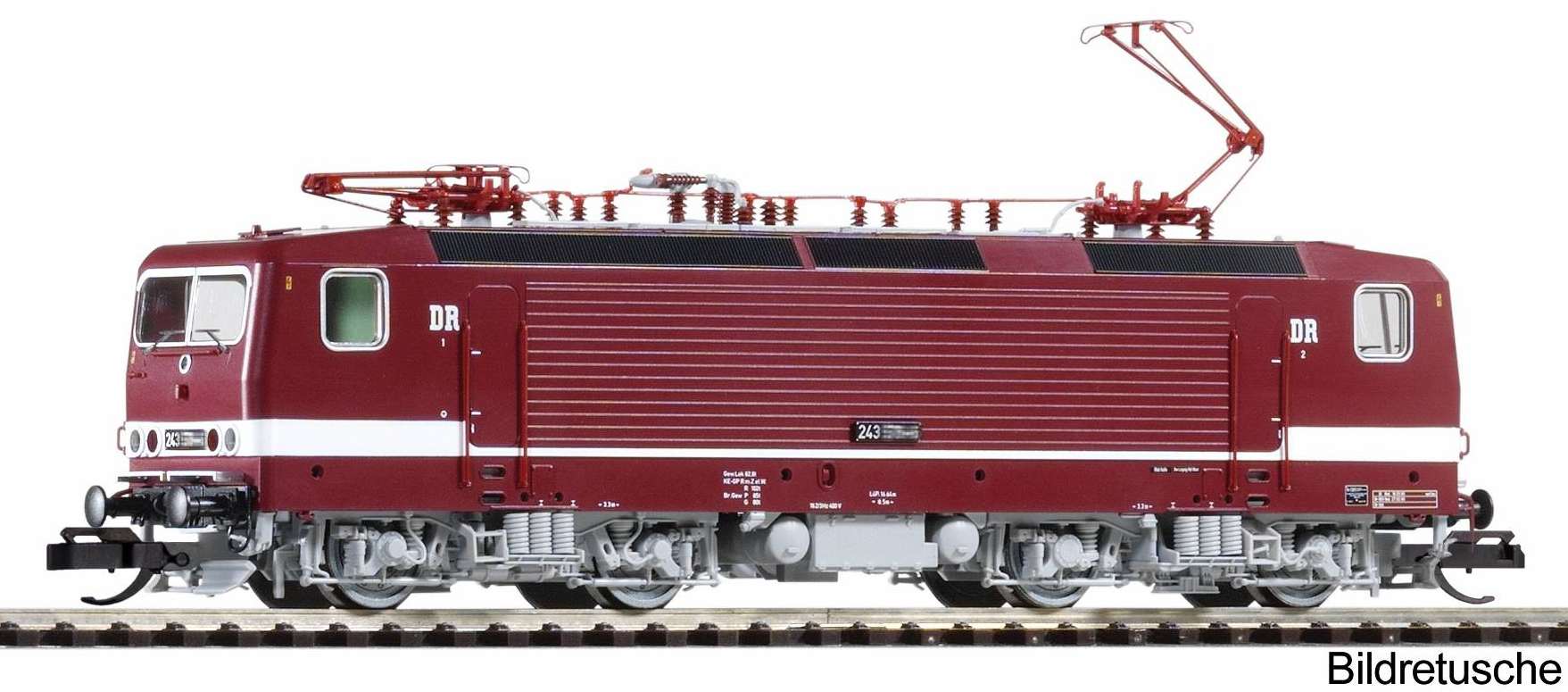 měřítko 1:120 - rozchod kolejí 12 mm osvětlení - 3 reflektory vpředu, 2 světla vzadu, přepínatelné podle směru jízdy 4 hnané nápravy 2 bandážované nápravy kinematika krátkého spřáhla (KKK) podle normy NEM 358 digitální rozhraní podle NEM 662 s konektorem Next18 zvukový generátor instalován lokomotivní digitální dekodér (DCC) minimálni projížděný poloměr 310 mm 139 mm - celková délka modelu přes nárazníky 4 - celkový počet náprav nebo rozložení náprav