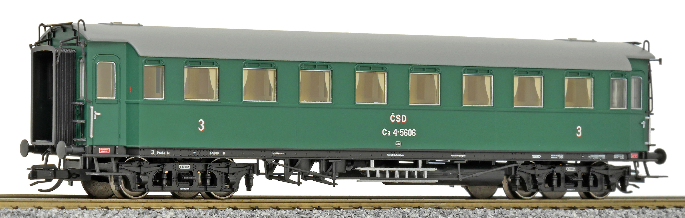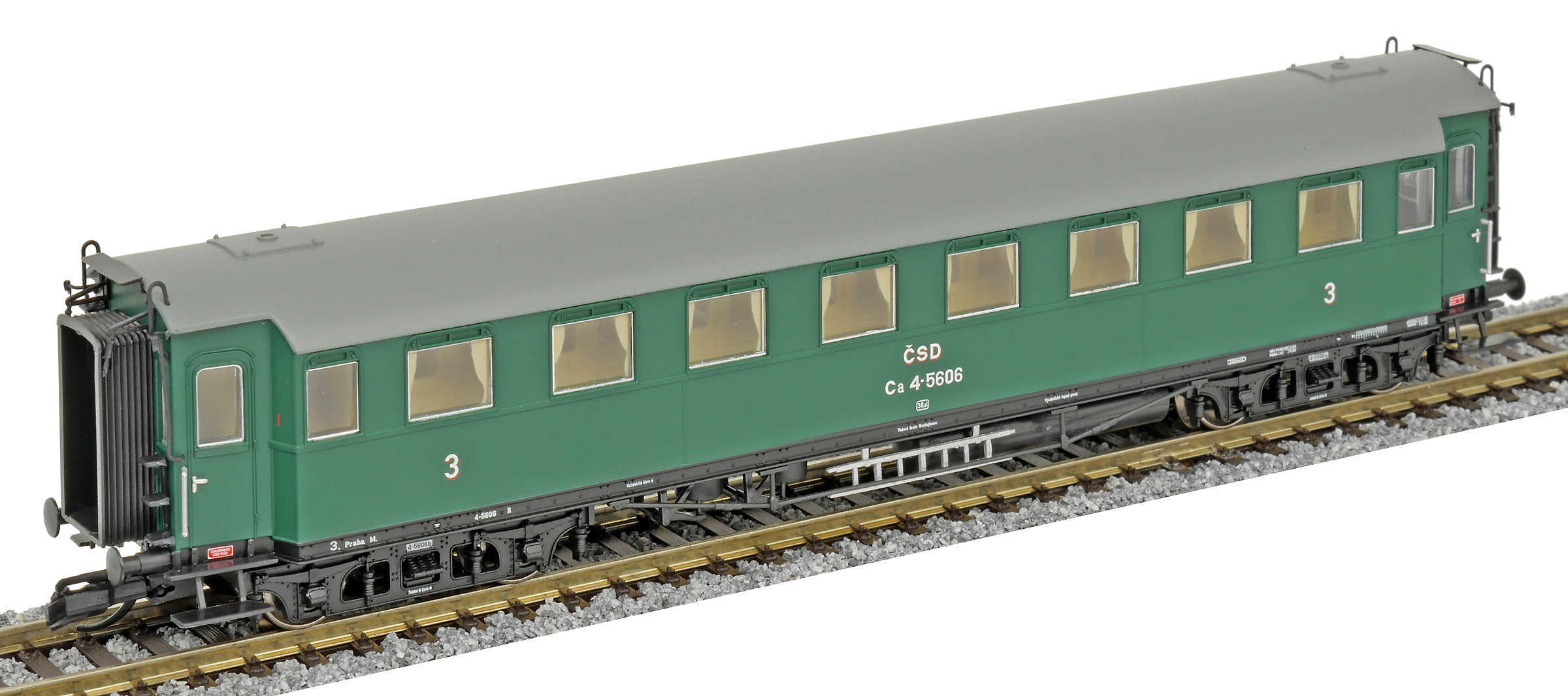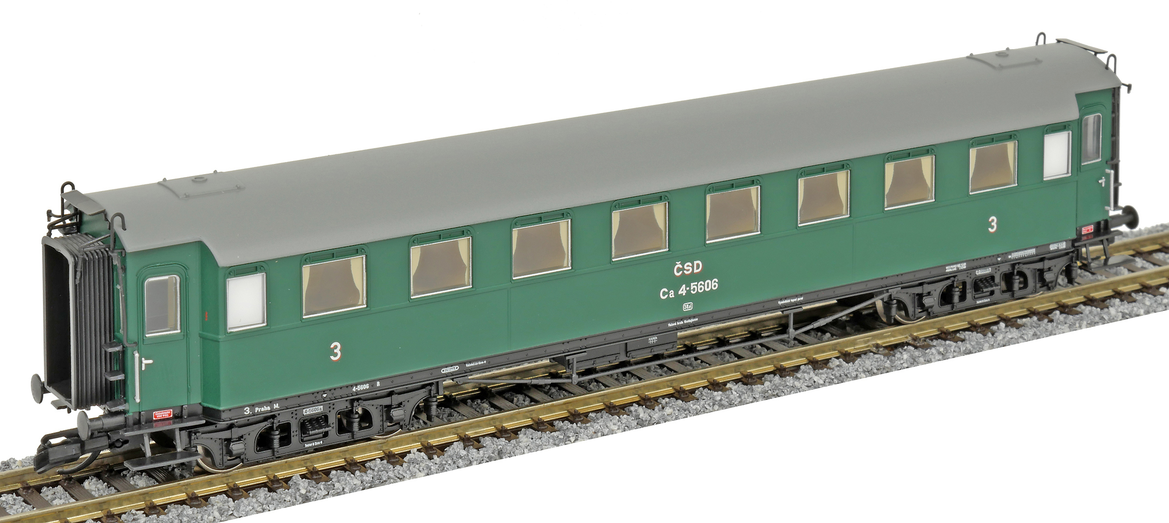 | oddílový osobní vůz zelený s šedou střechou 3. tř. |