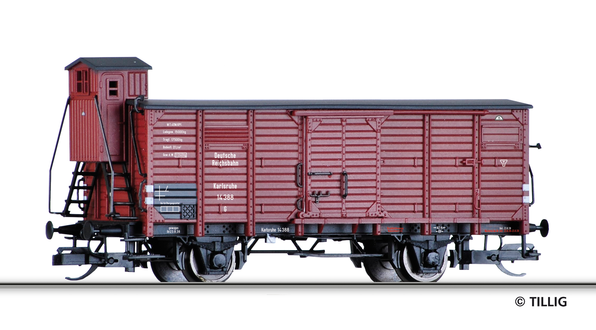 | krytý nákladní vůz červenohnědý s brzdařskou budkou |