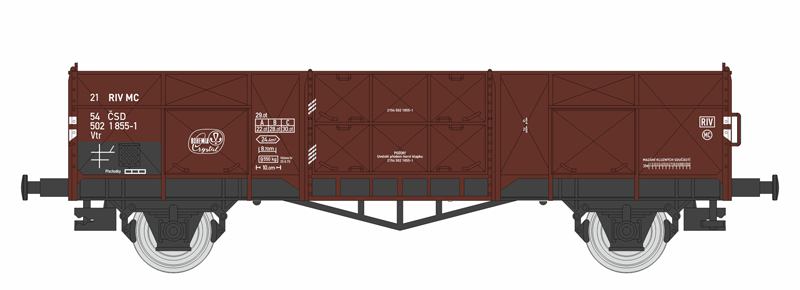 | • 21 54 502 1 855-1 | → | nákladní, nezávislé nápravy, pevný rozchod, ve vlastnictví železniční správy, RIV, PPV |