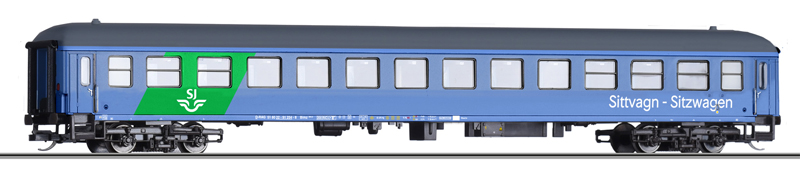 | rychlíkový vůz modrý s šedou střechou |